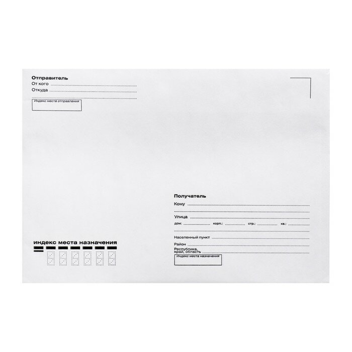 Конверт почтовый С5 162 x 229 мм, поле "Кому-куда", без окна, отрывная лента, внутренняя запечатка, 80 г/м2, 100 шт.