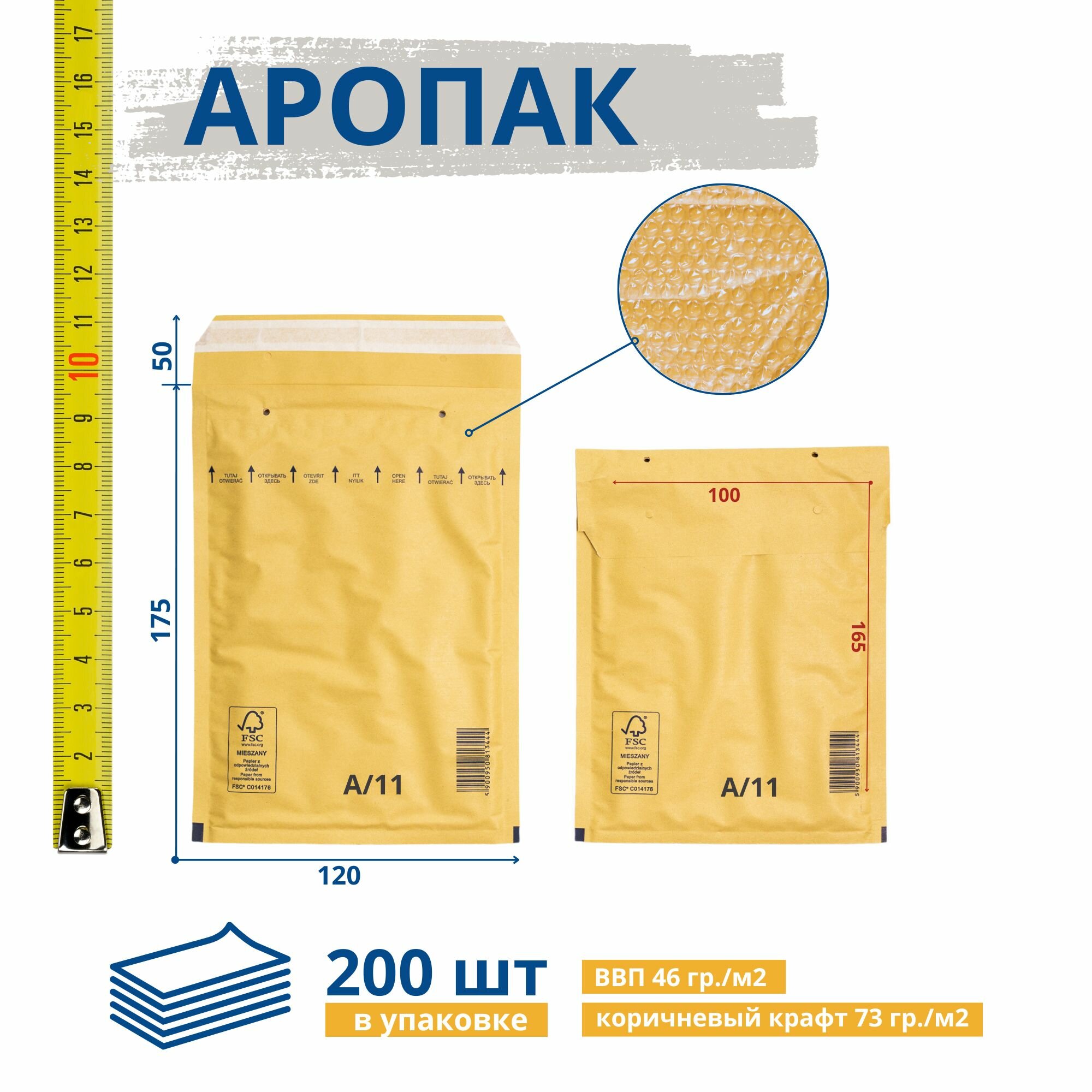 Купить Крафт пакет воздушно пузырчатый (120*175) 50 мм, A/11, Коричневый, 200 штук, конверт с пузырчатой пленкой А 11
