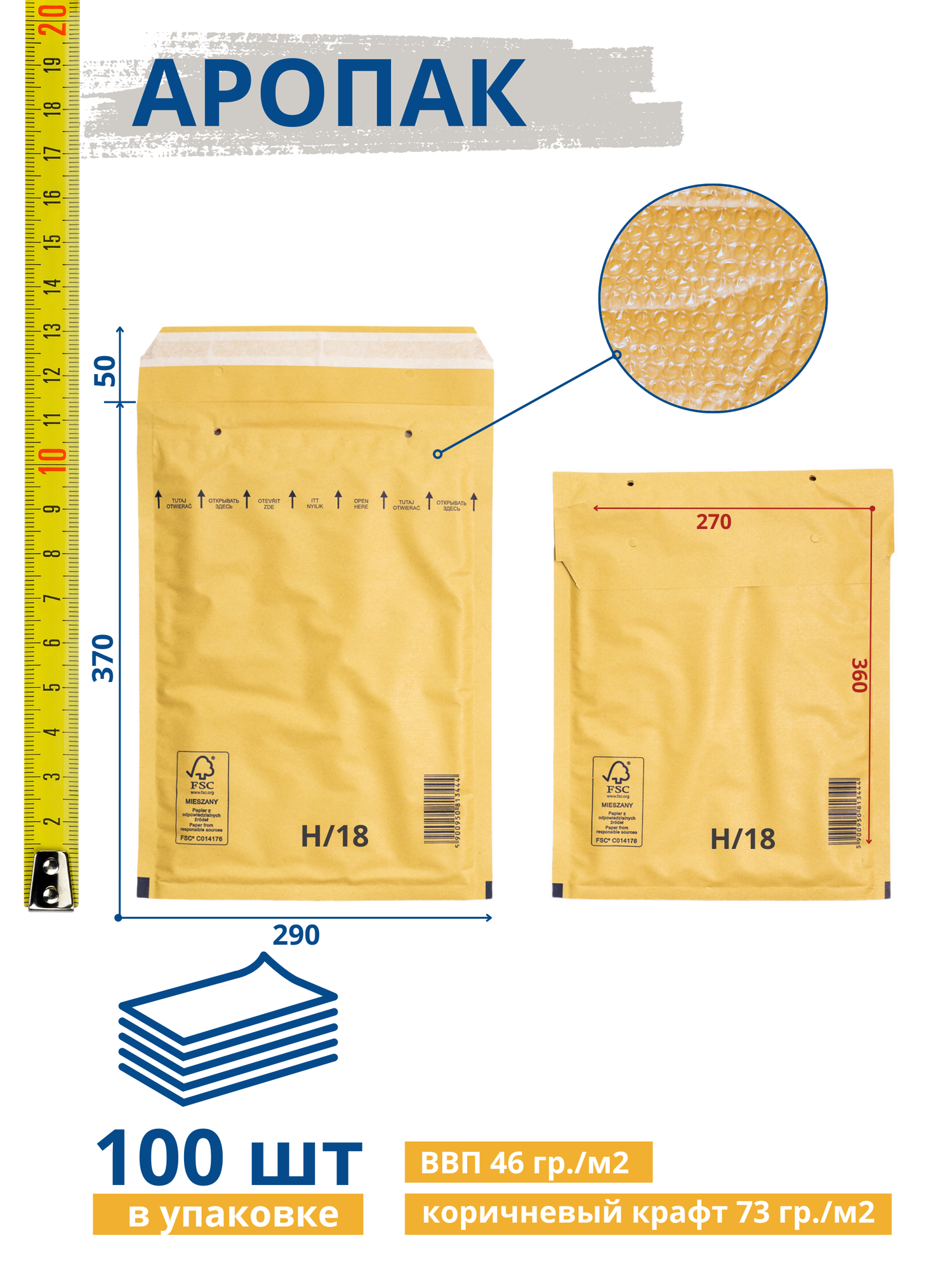 СохранитьКрафт пакет воздушно пузырчатый (290*370) 50 мм, Коричневый, 100 штук, AROPAC, H/18 интересное: