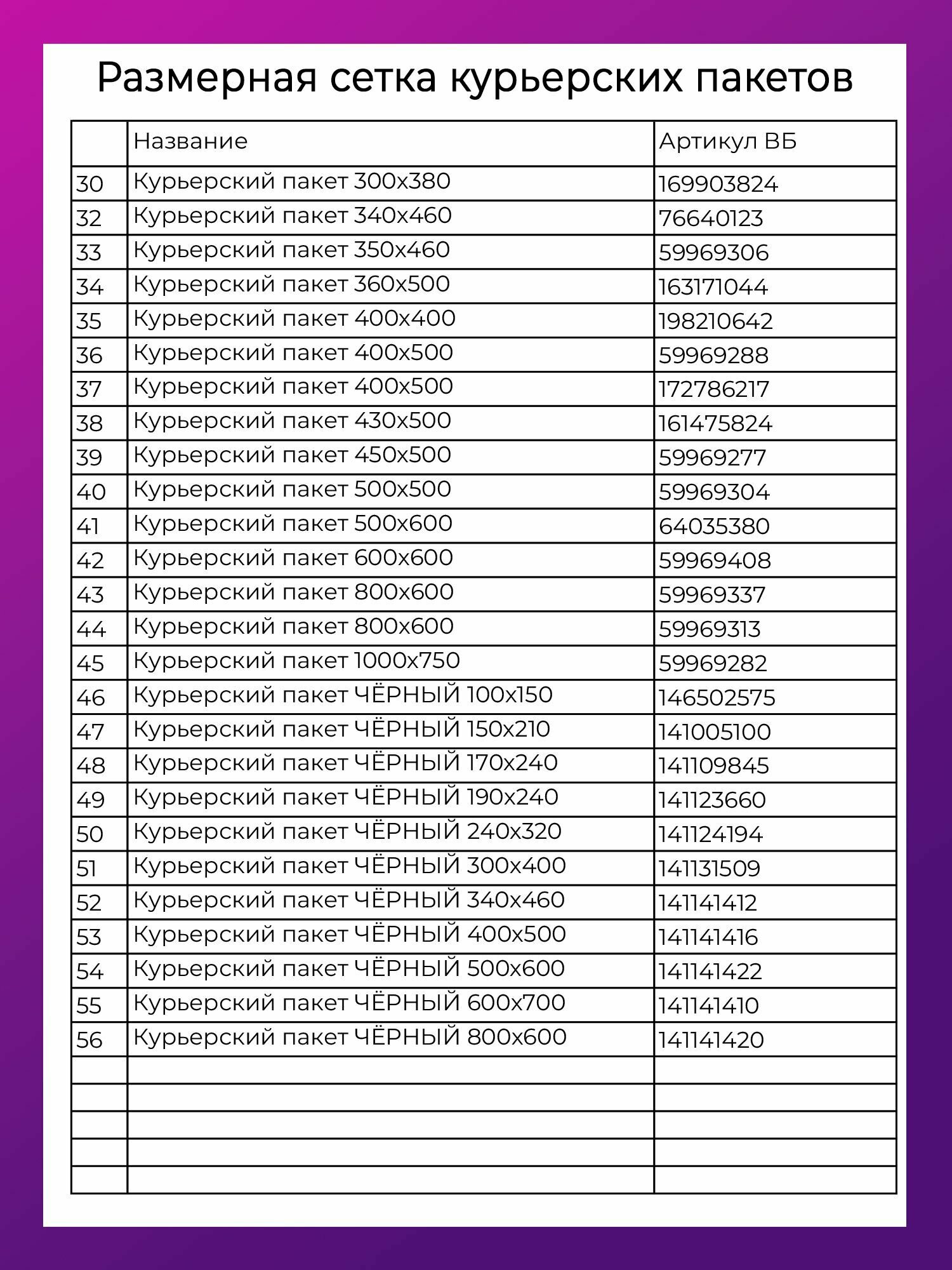 Ниже Вы можете прочитать отзывы на Курьерский пакет, 100х150+40, без кармана, 60 мкм, 2000 шт., ознакомится с подробными характеристиками, посмотреть интересные обзоры и фотографии на Курьерский пакет, 100х150+40, без кармана, 60 мкм, 2000 шт..