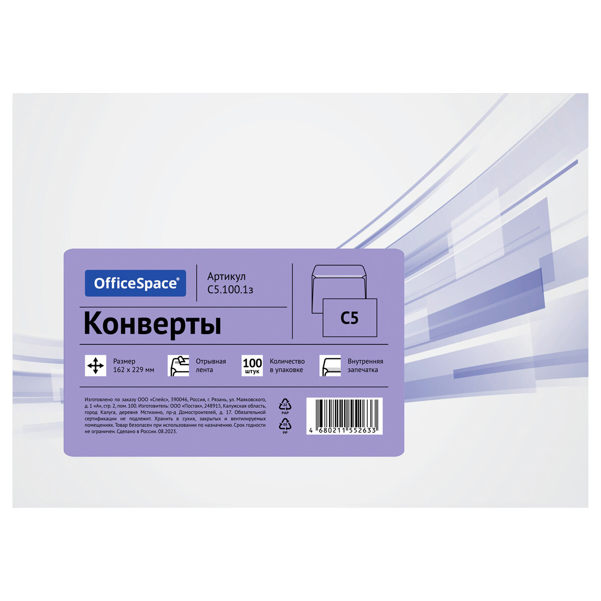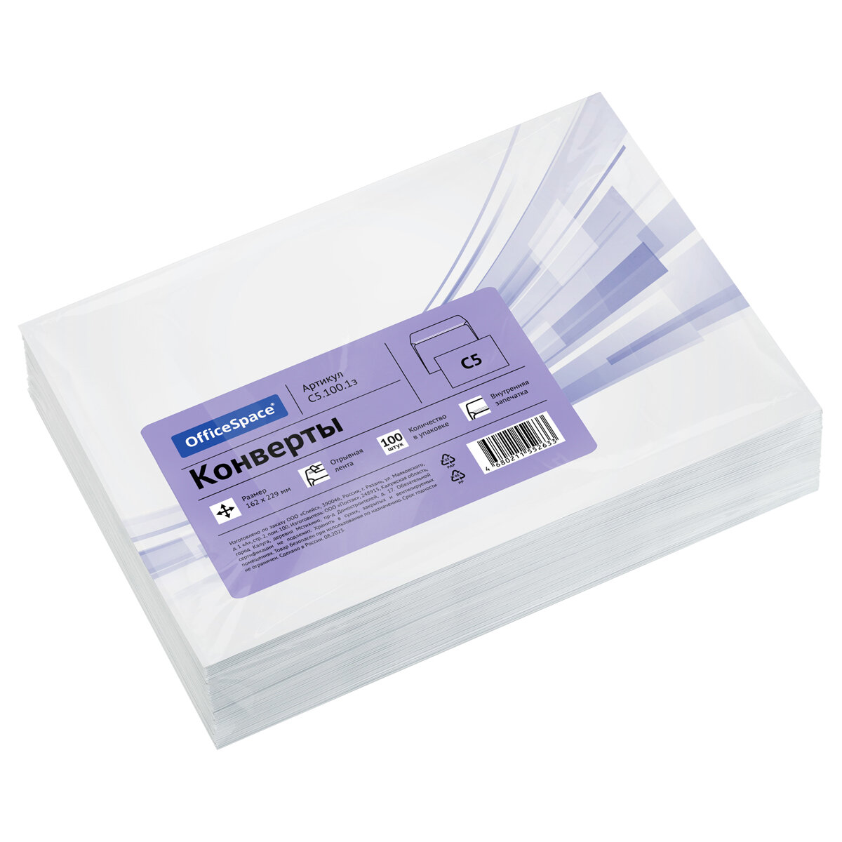 Конверт C5, OfficeSpace, 162*229мм, б/подсказа, б/окна, отр. лента, внутренняя запечатка, термоусадка, 100 штук интересное: