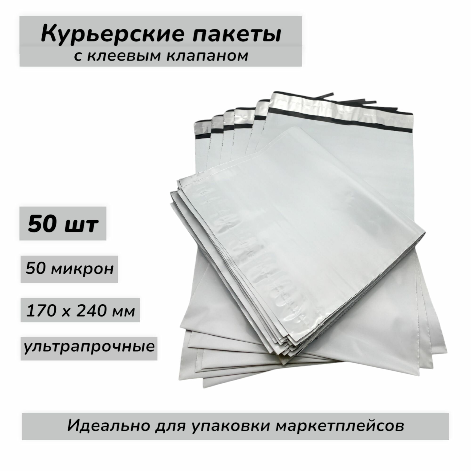 Купить Курьерский упаковочный сейф пакет 170х240 мм, с клеевым клапаном, 50 мкм, 50 штук