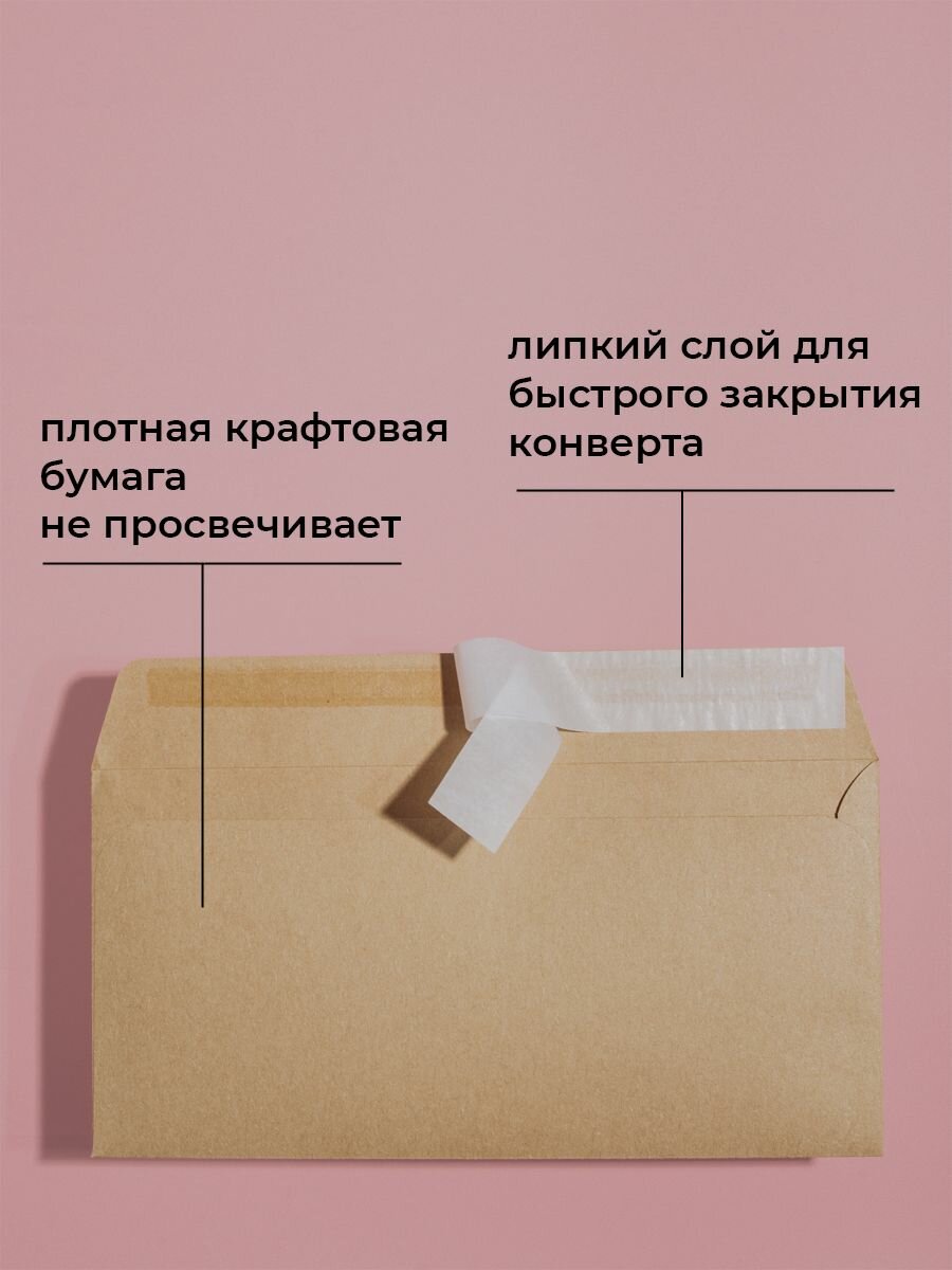 Крафтовые конверты Е65 (110х220 мм) 25 шт. / бумажные конверты со стрип лентой CardsLike