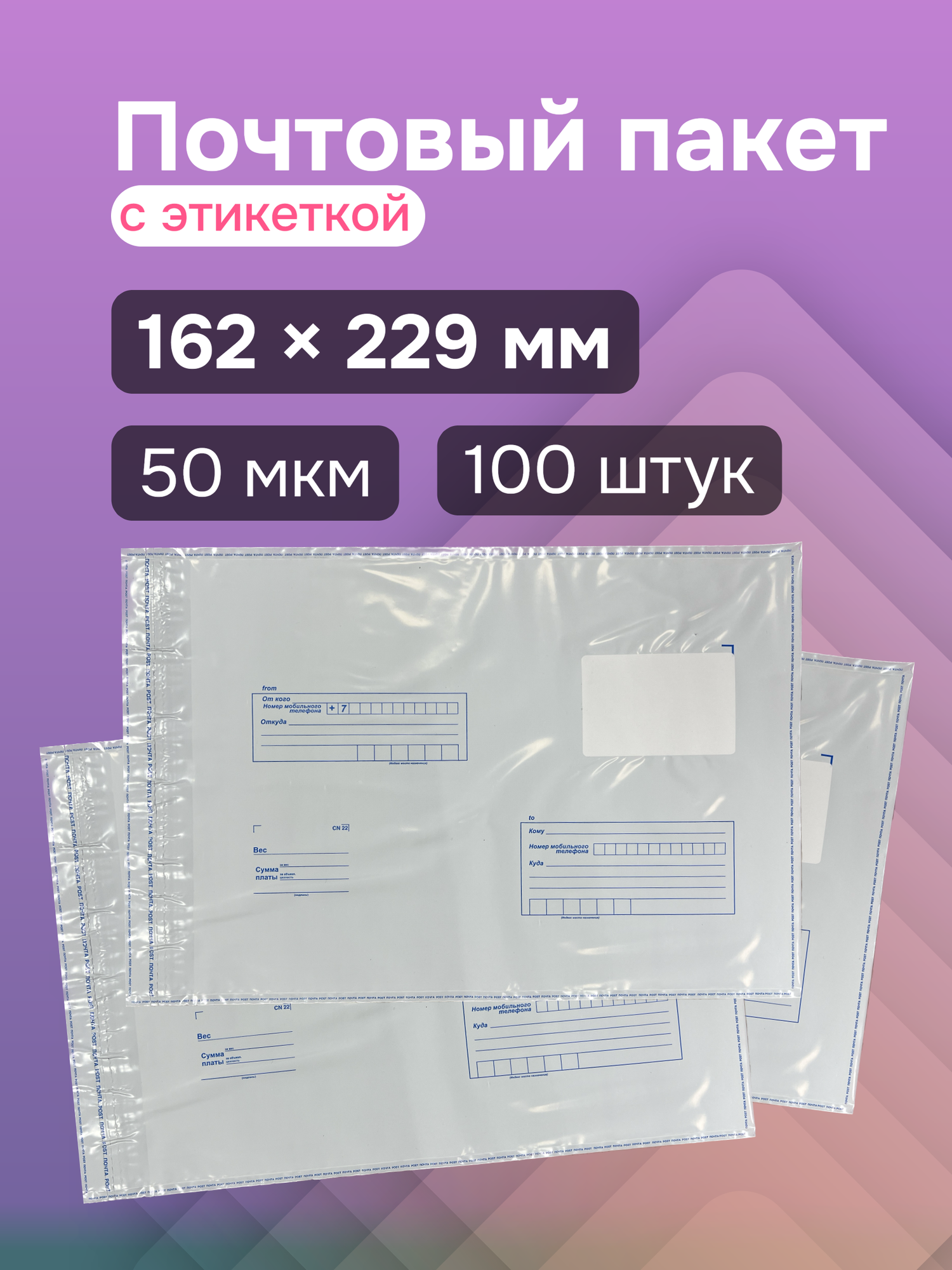 Почтовый пакет "Почта России", C5, 162*229 мм, 100 шт, с этикеткой, полиэтилен интересное: