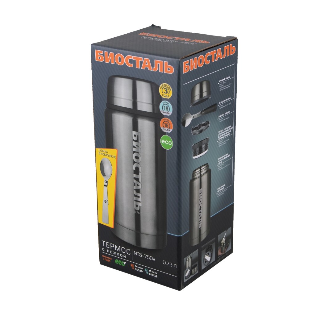 Термос Биосталь 0,75 л с ложкой для еды NTS-750