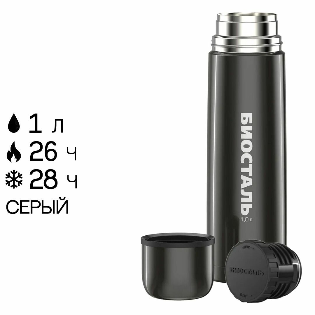 Термос Биосталь Biostal для чая и кофе, 1 л, вороненая сталь, NB-1000V