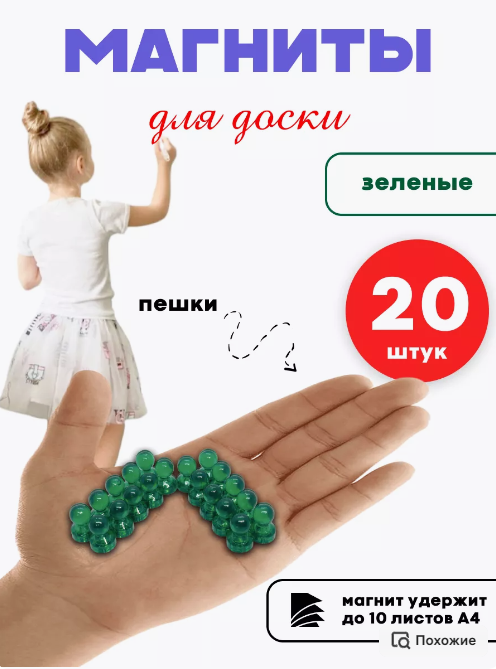 Набор канцелярских магнитов для магнитной доски 20 шт. зеленые интересное: