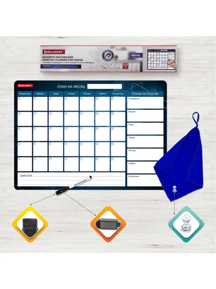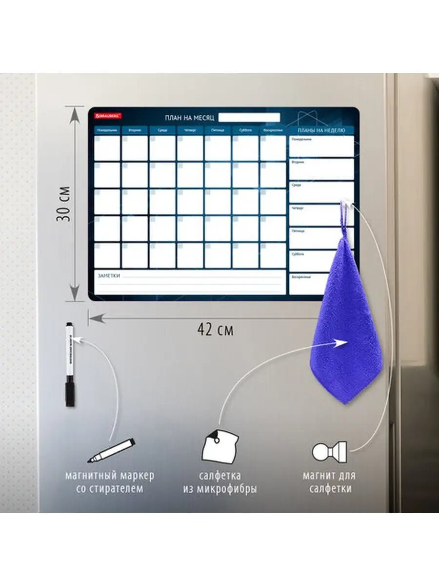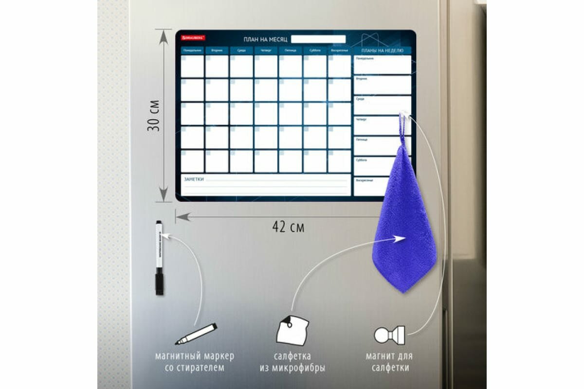 Купить Планинг Brauberg "План на месяц", недатированный, на холодильник, магнитный, ПВХ, формат А3