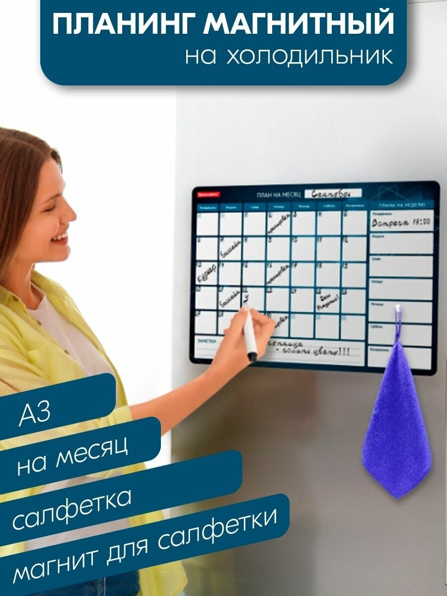 Планинг Brauberg "План на месяц", недатированный, на холодильник, магнитный, ПВХ, формат А3 интересное: