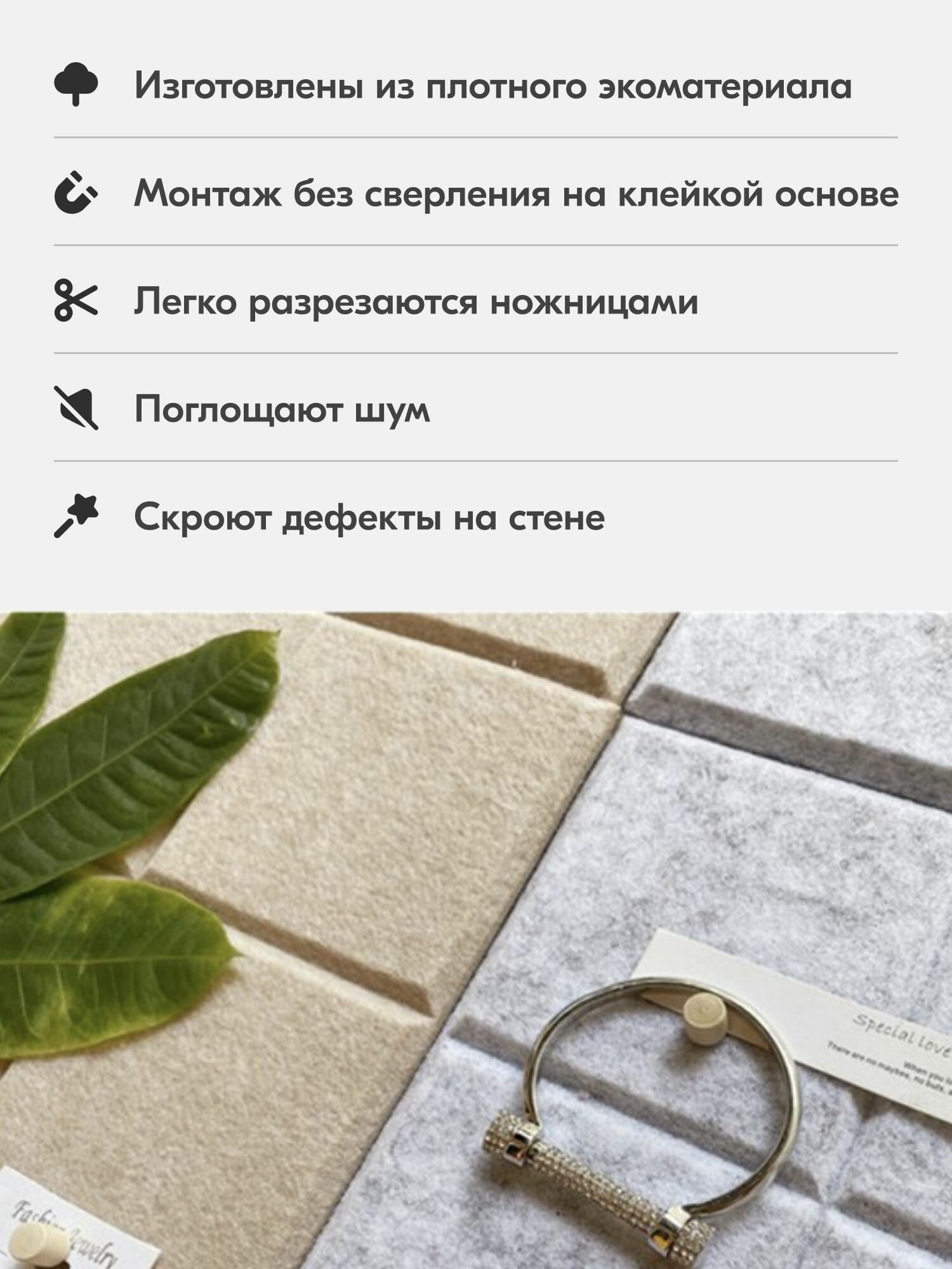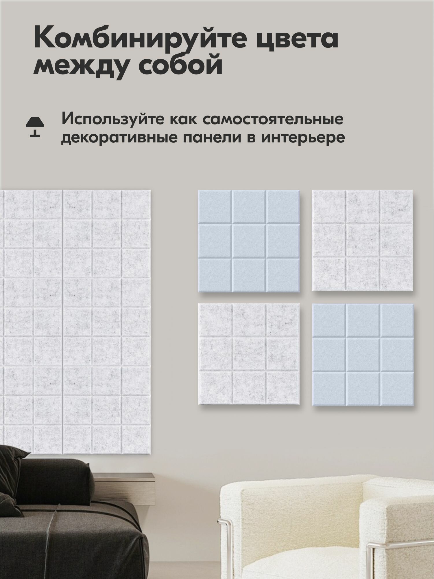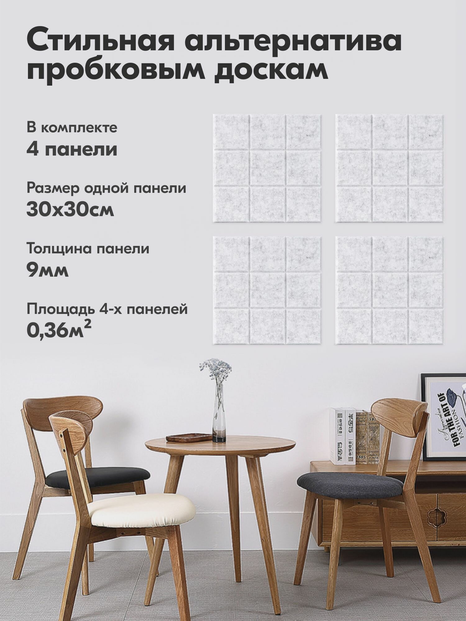 | Комплектация | 4 самоклеящиеся панели размером 30х30 см. в картонной коробке |