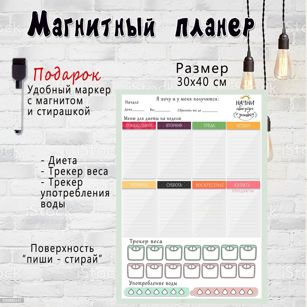 Магнитный планер-трекер "Худеем за 14 дней". /размер А3 /поверхность пиши - стирай интересное: