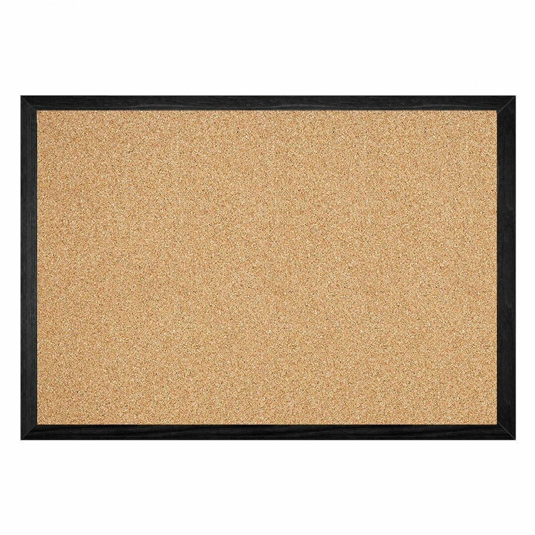 Пробковая доска 40х60 (см.) в деревянной раме, цвета "Черный" на стену, информационная для заметок интересное: