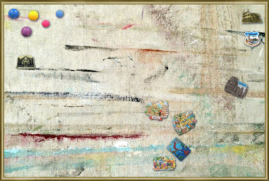 Магнитная настенная доска АртБорд "Холст художника" полимерная для коллекции магнитов, с горизонтальным и вертикальным креплением, для дома, в тонком алюминиевом багете, 60х40 см