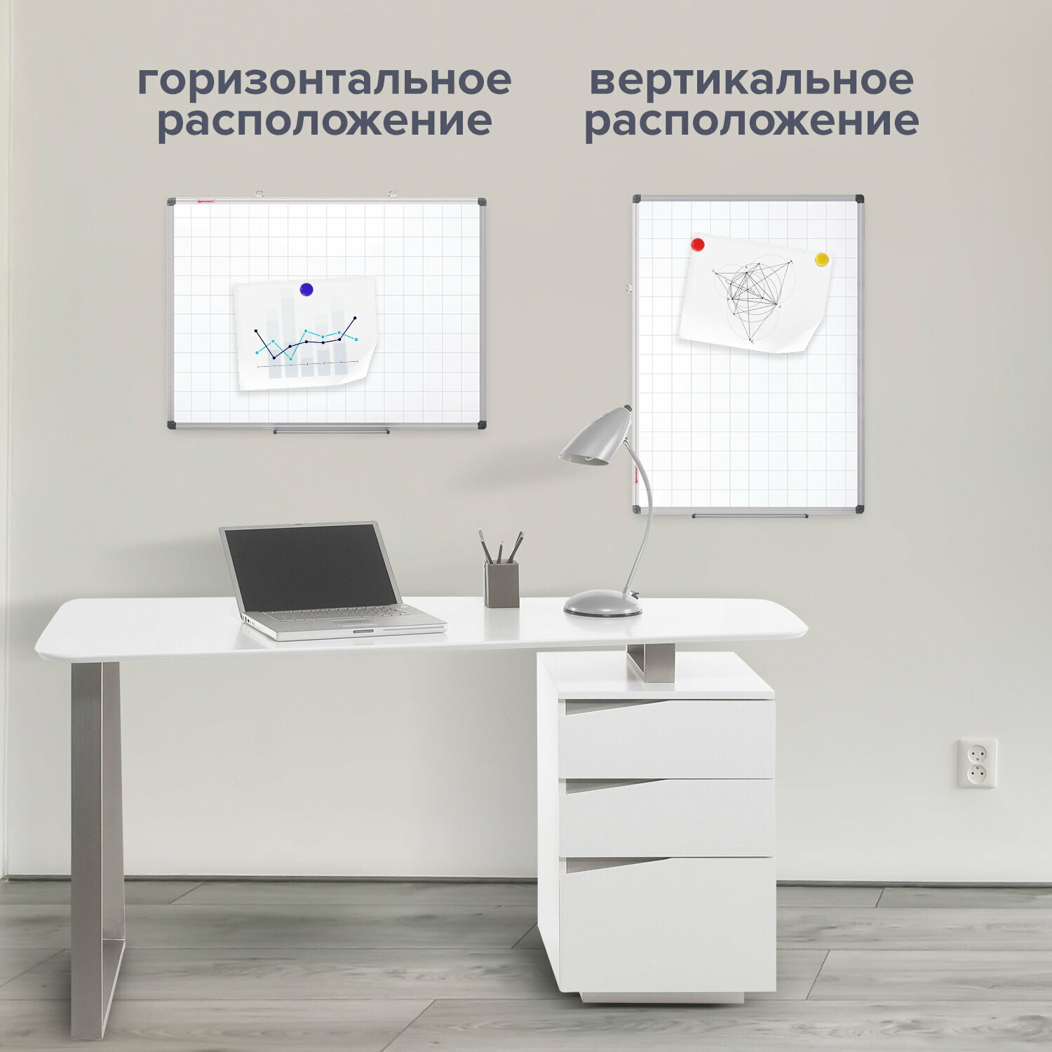 Купить Доска демонстрационная магнитно-маркерная на стену для офиса и дома В Клетку, 60х90см, алюминиевая рамка, Brauberg Extra, 237563
