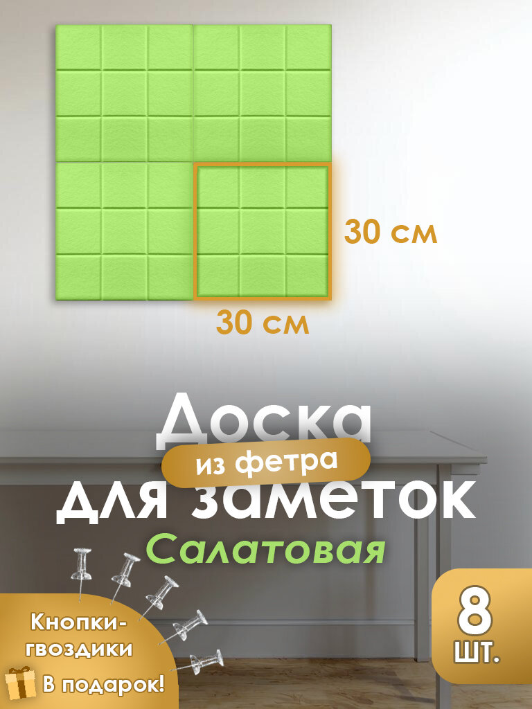 Панель на стену из фетра для заметок 8 шт салатовый интересное: