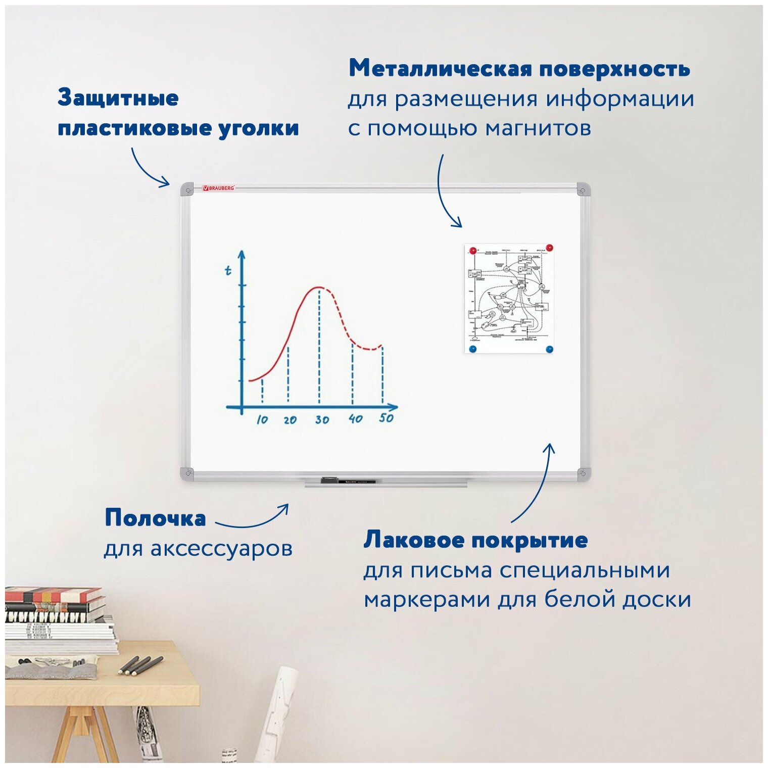 Доска магнитно-маркерная 70х50 см, алюминиевая рамка, гарантия 10 ЛЕТ, BRAUBERG, 238185 интересное: