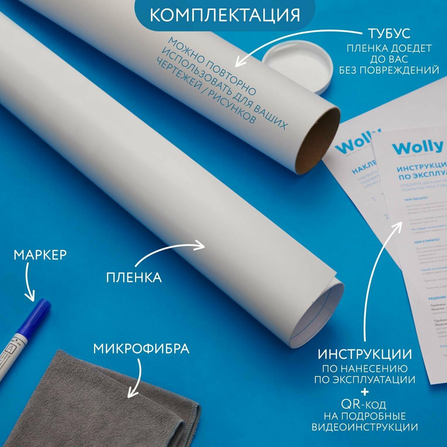 | Комплектация | - Самоклеящаяся маркерная белая пленка 1 шт., - Инструкции по наклеиванию с QR-кодами на видео-инструкции 2 шт., - Инструкция по эксплуатации пленки 1 шт., - Маркер для белых досок и салфетка из микрофибры для стирания В ПОДАРОК |