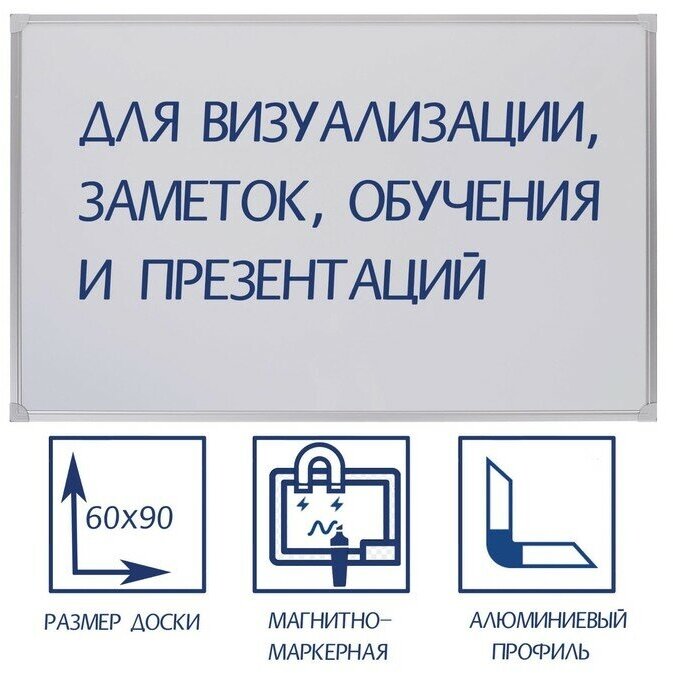 Доска магнитно-маркерная 60х90 см, Calligrata стандарт, в алюминиевой рамке, с полочкой, 4275226 интересное: