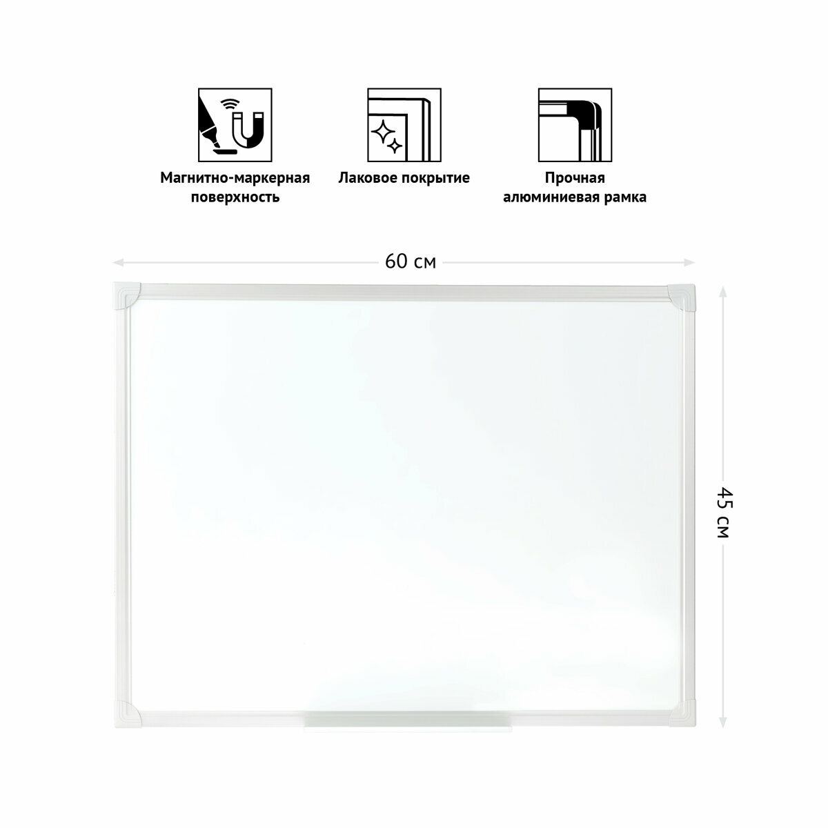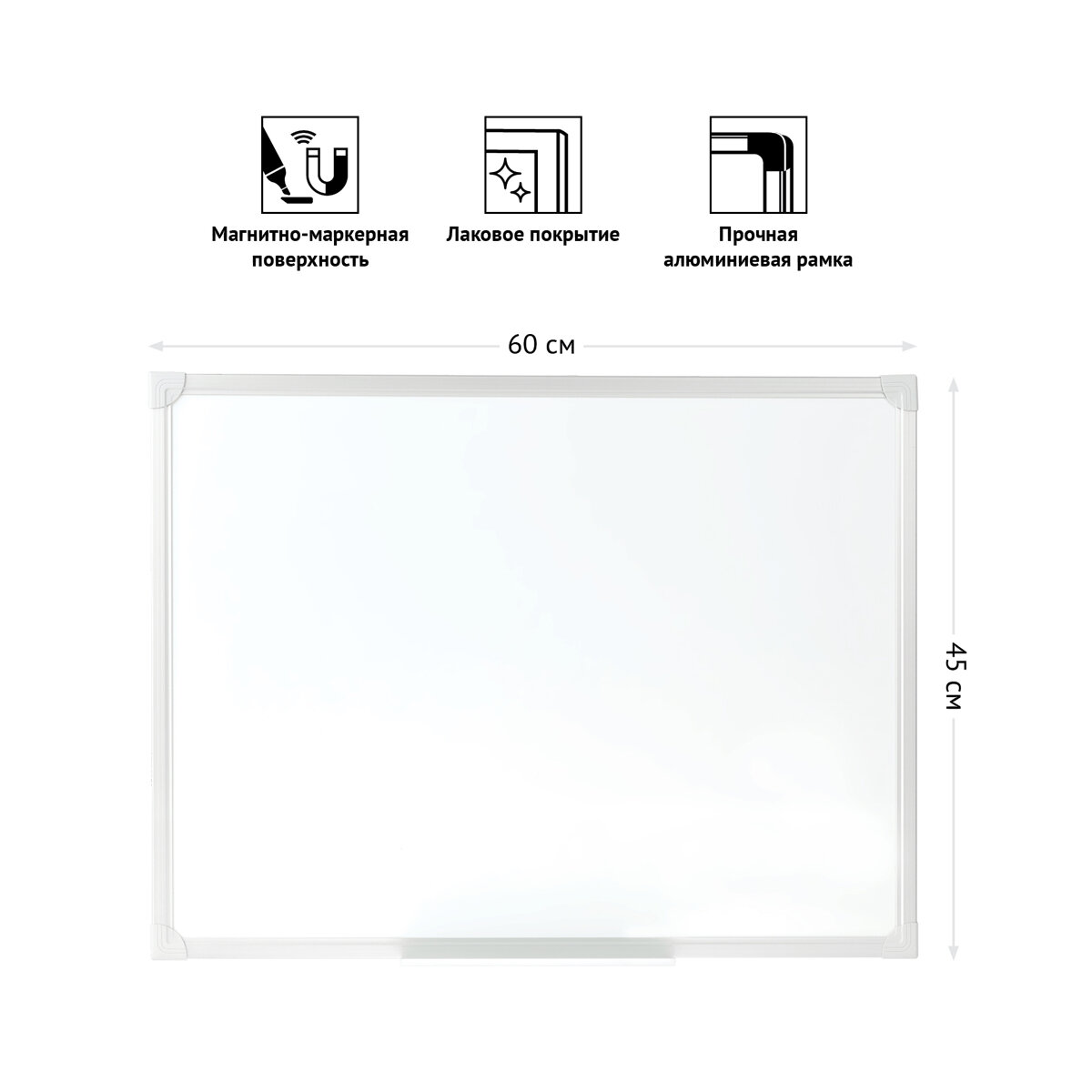 | Комплектация | Доска магнитно-маркерная OfficeSpace, 45*60см, алюминиевая рамка, полочка |