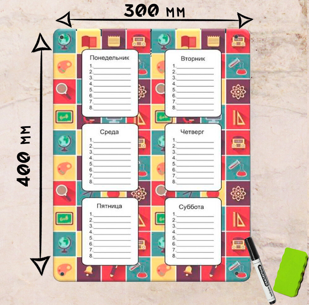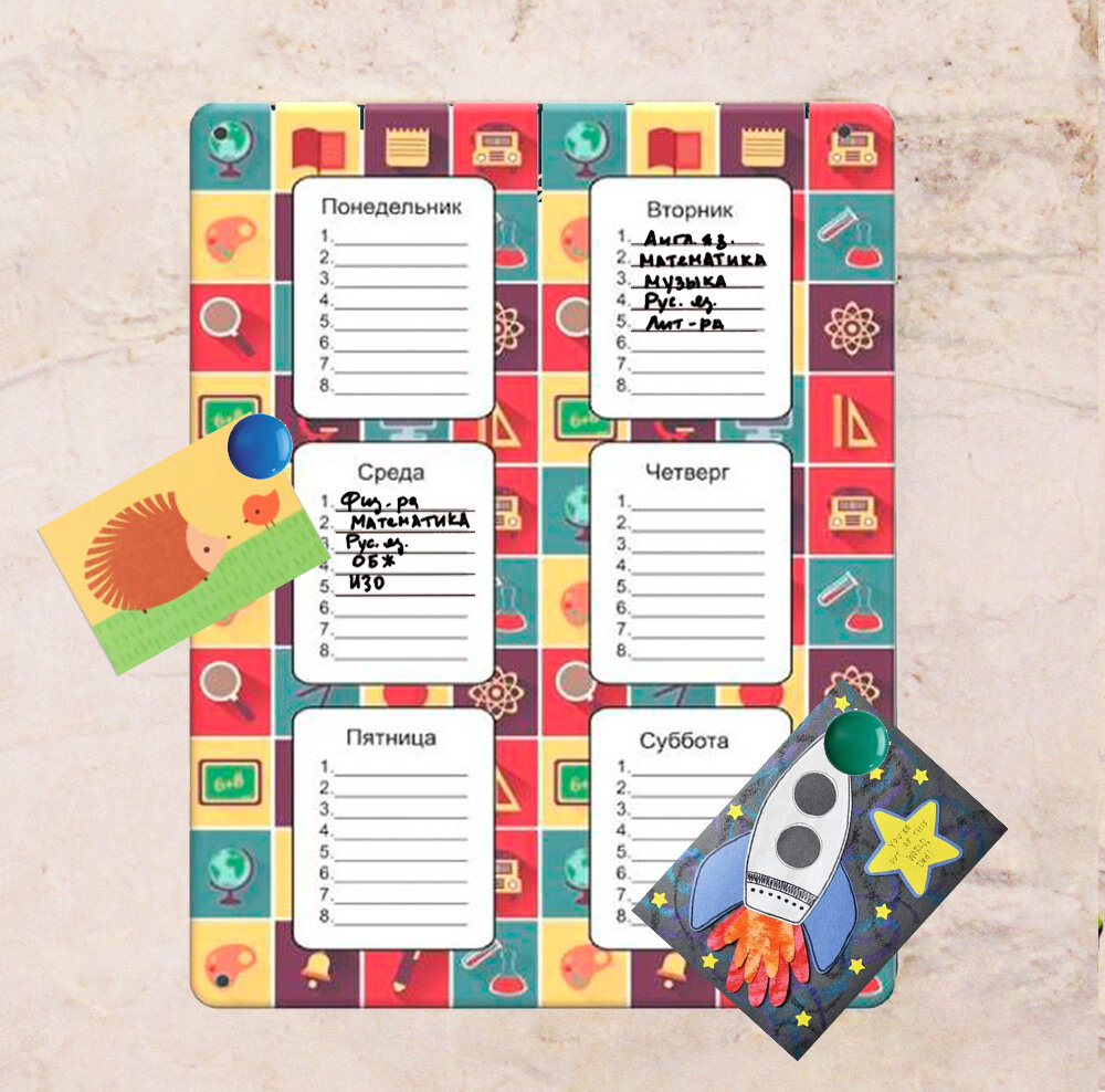 Магнитно маркерная доска Школьное Расписание Органайзер, на стену, металл, 30х40 см. интересное: