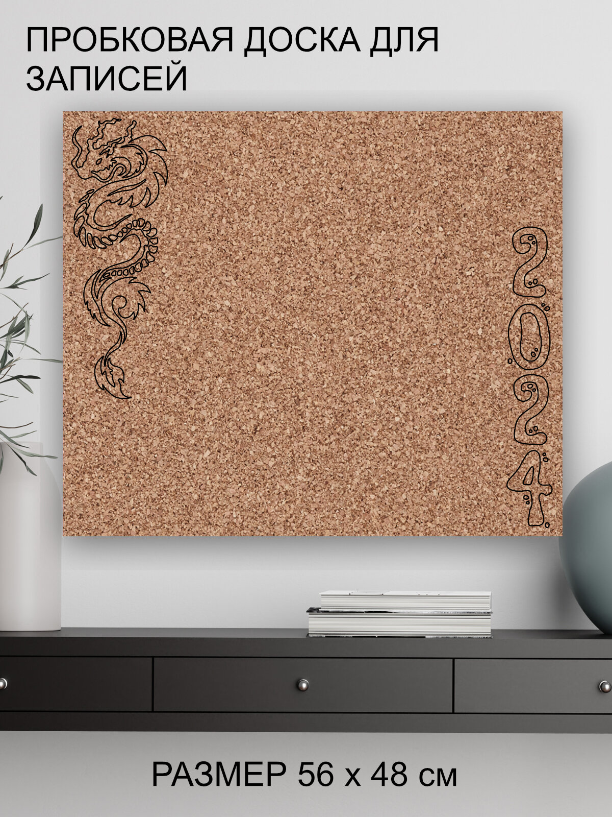 Пробковая доска' Дракон 2024 ' 56х48 см. (Доска с новогодним рисунком ) интересное: