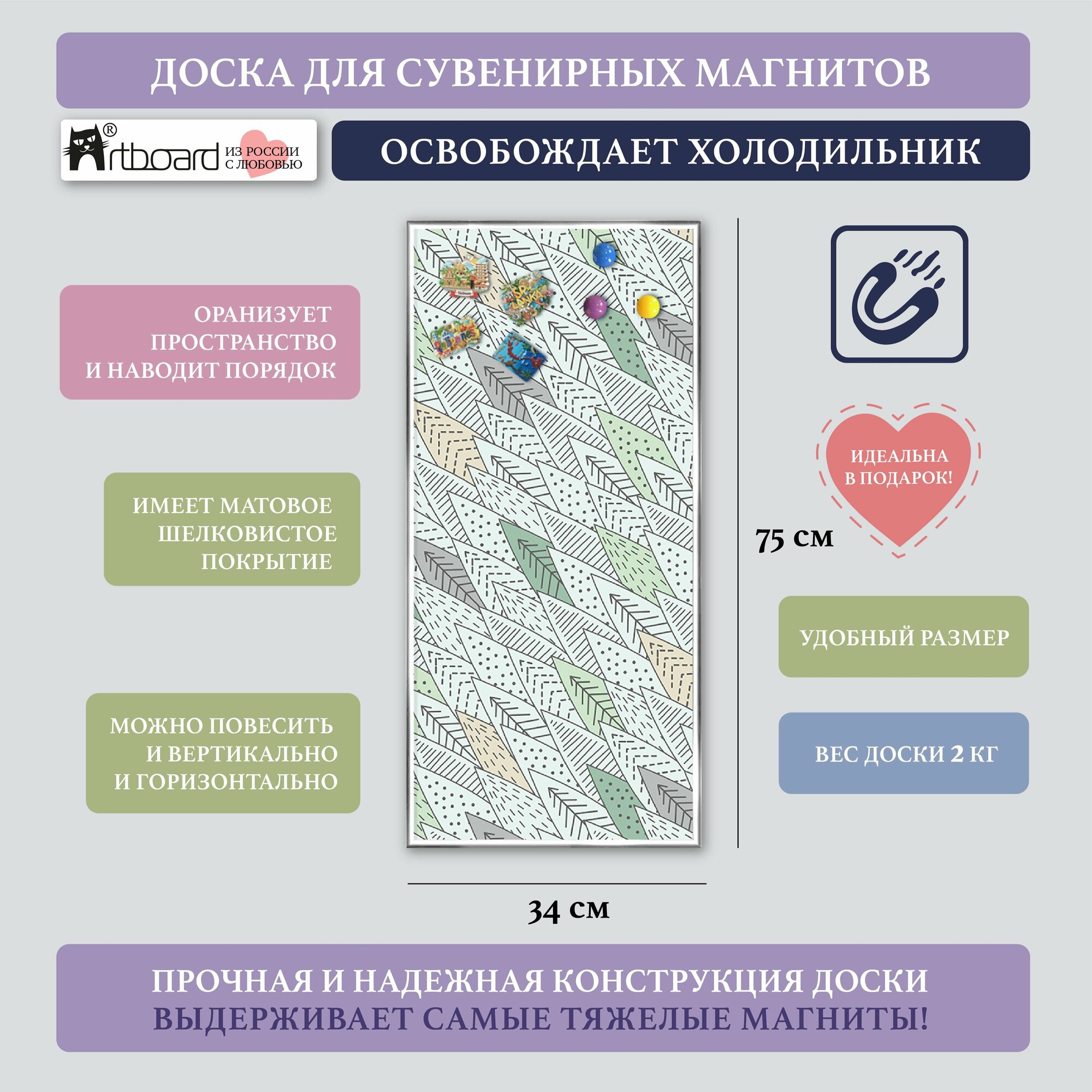 Магнитная настенная доска АртБорд "Скандинавия", зеленая, с матовым полимерным покрытием, 75х34 см, в тонком алюминиевом багете. интересное: