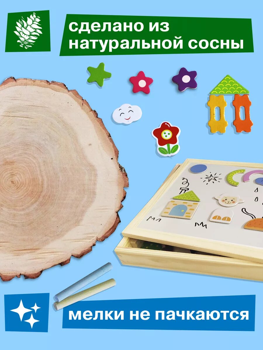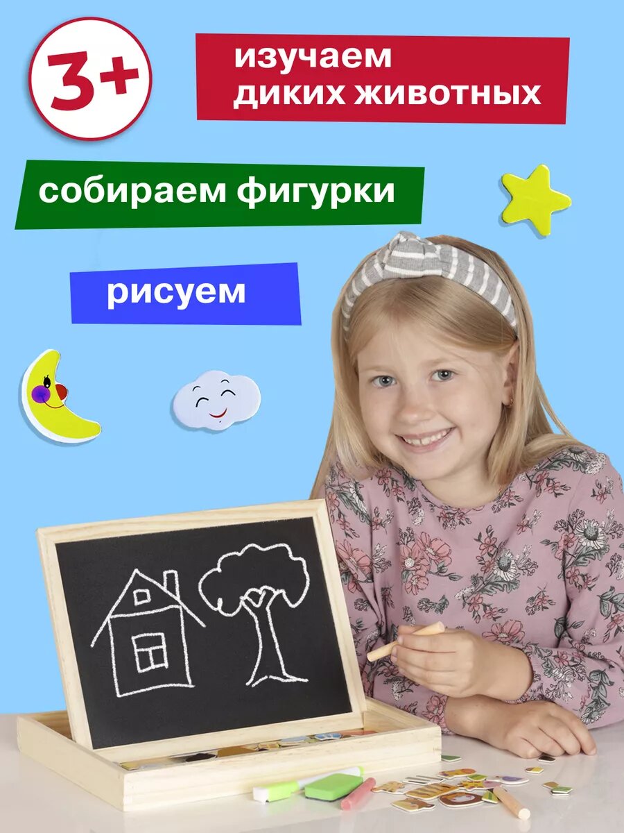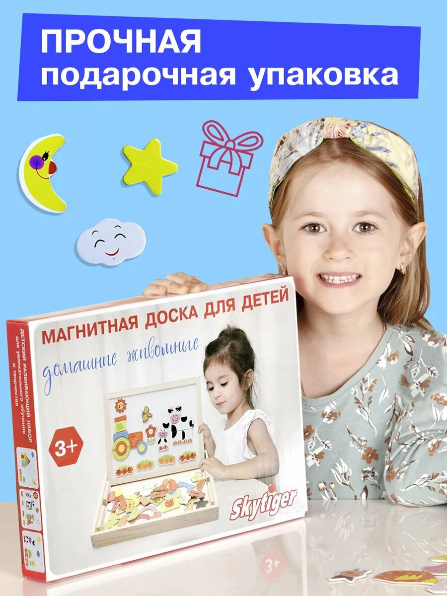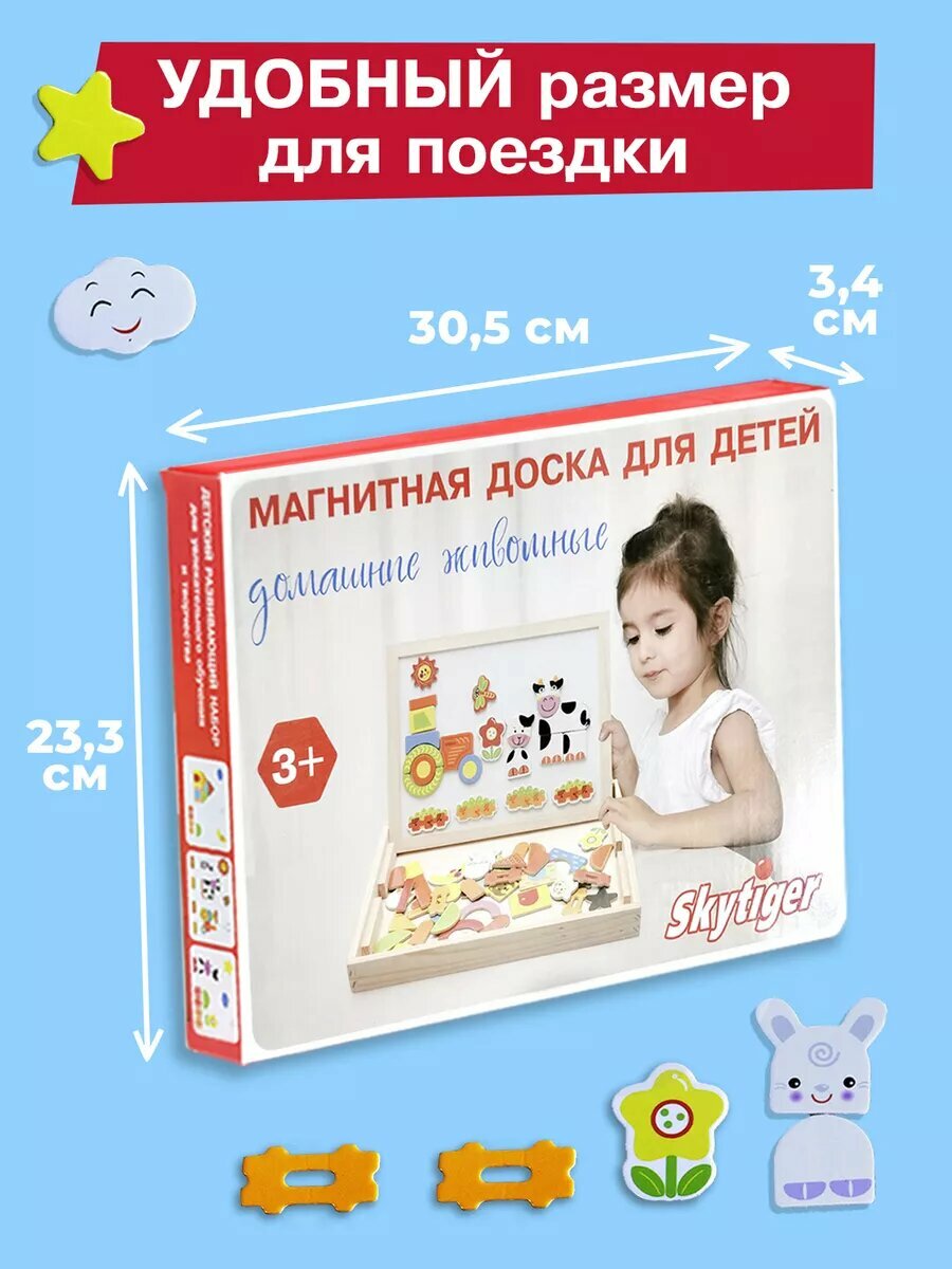 Магнитная меловая развивающая доска для детей. Skytiger "Домашние животные", Дерево, 23,5 см интересное: