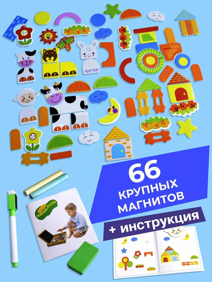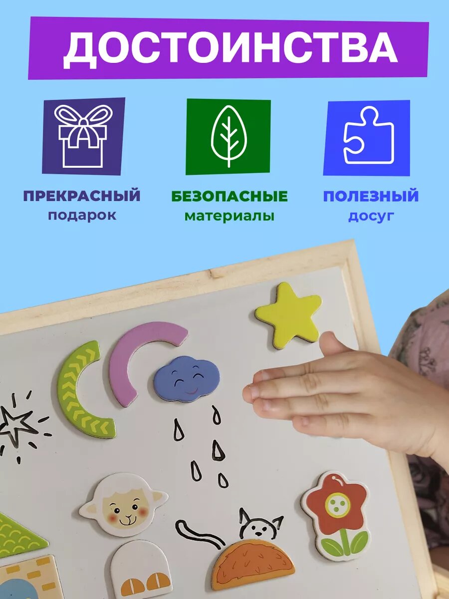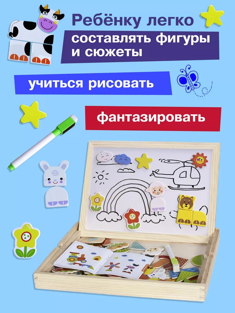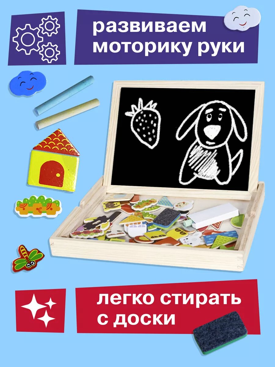 Магнитная меловая развивающая доска для детей. Skytiger "Домашние животные", Дерево, 23,5 см интересное:
