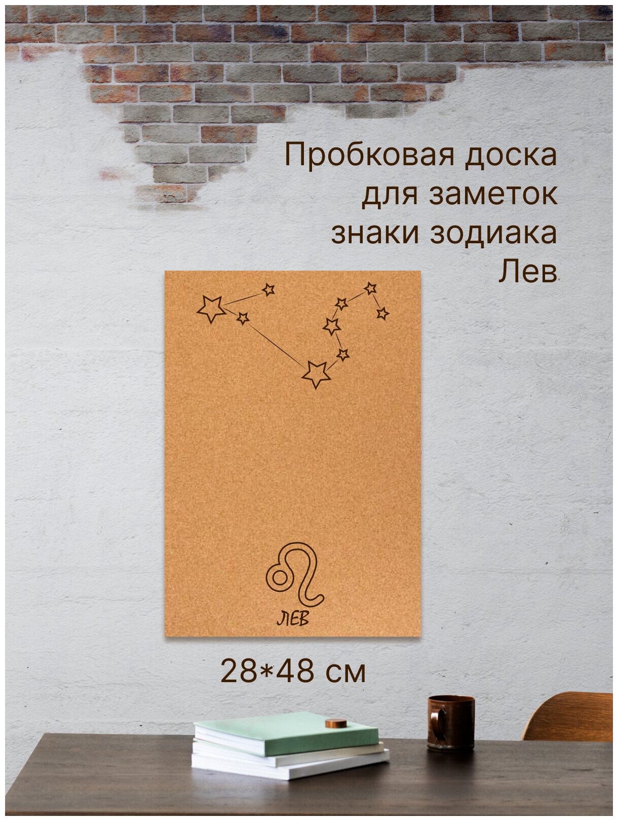 Пробковая доска без рамки для заметок на вспененной основе "Знаки зодиака. Лев", 48х28 см. интересное: