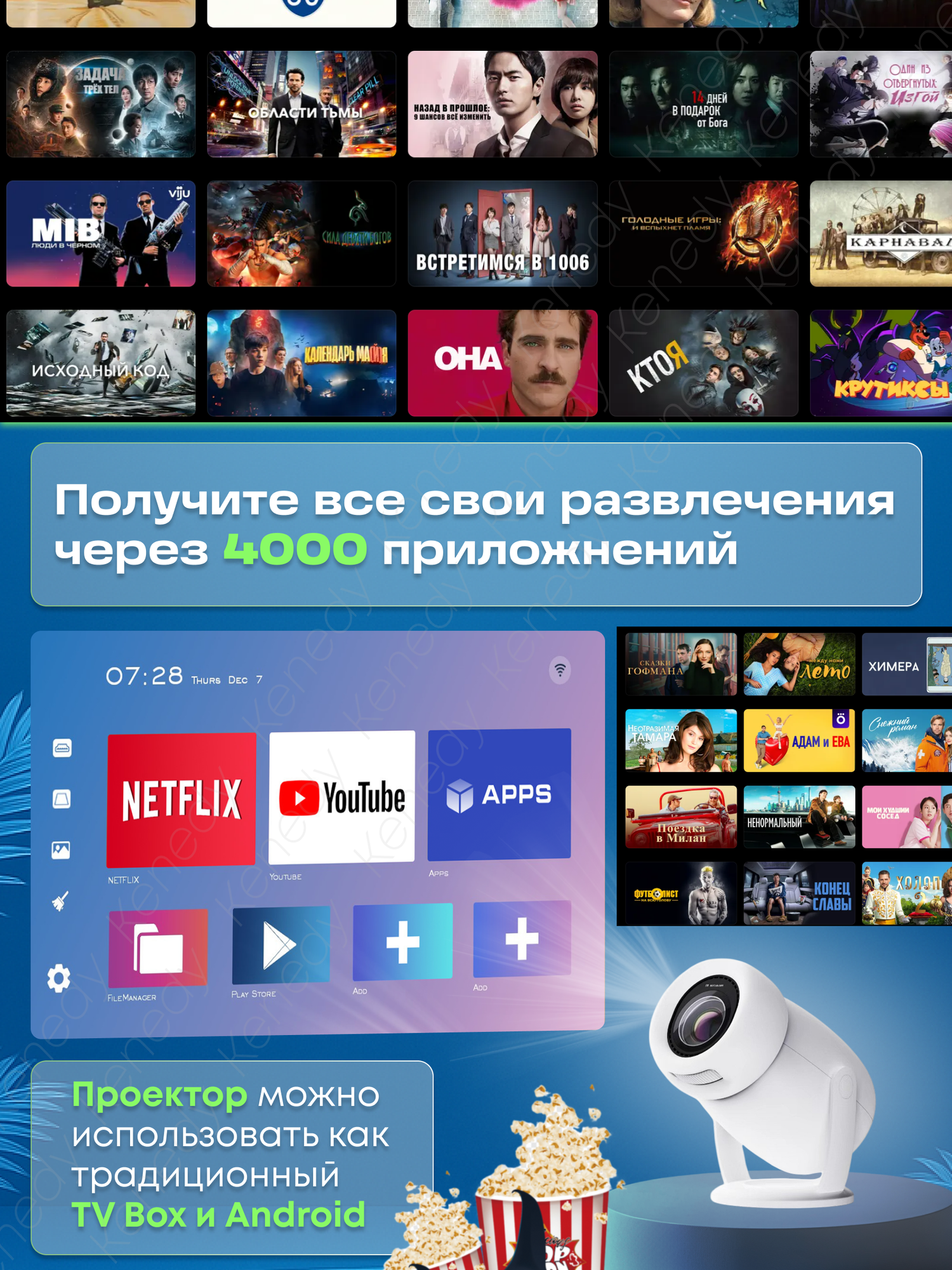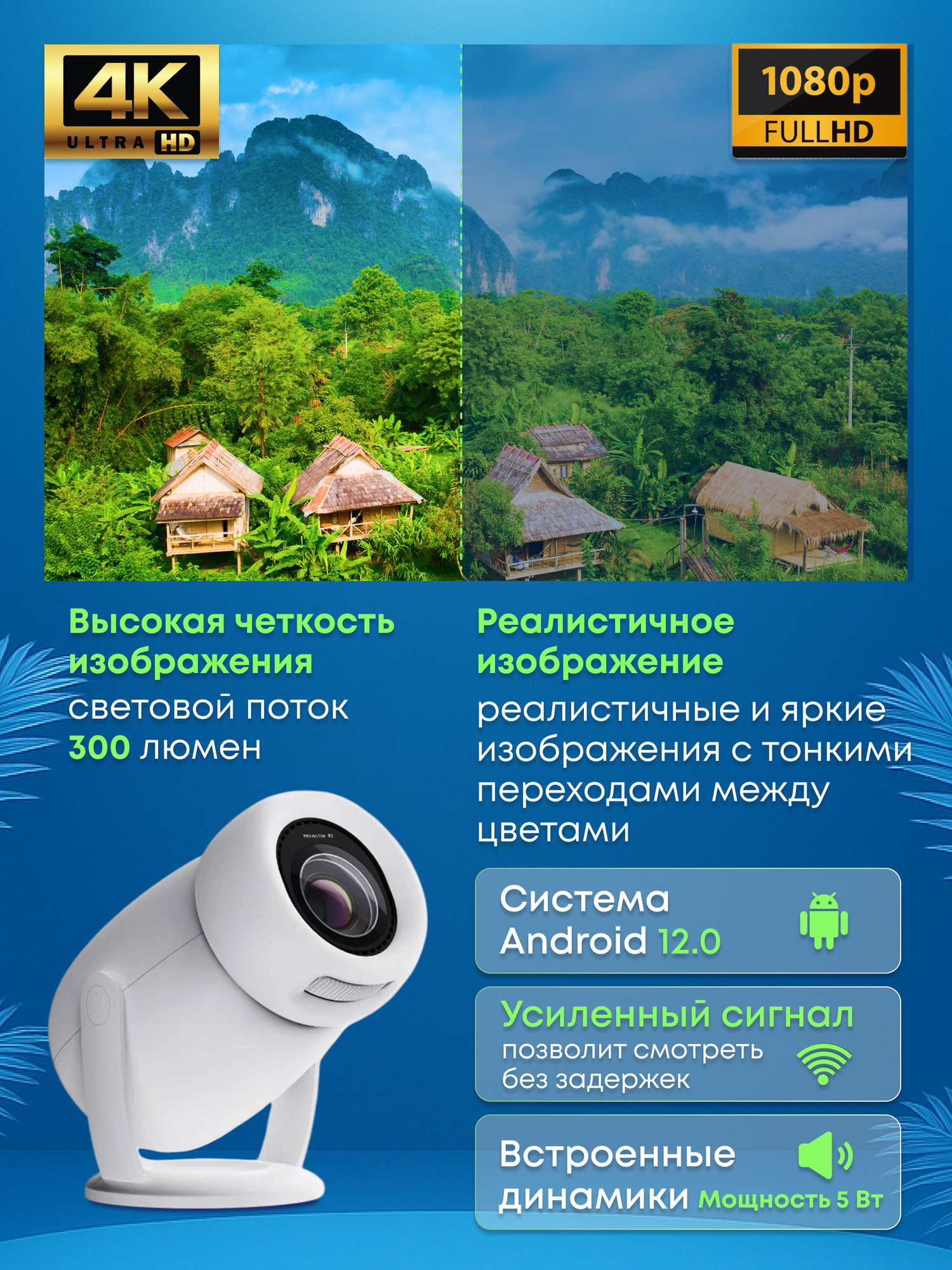 Проектор для фильмов, кинопроектор для дома Xiaomi Wanbo T2 Max Blue EU