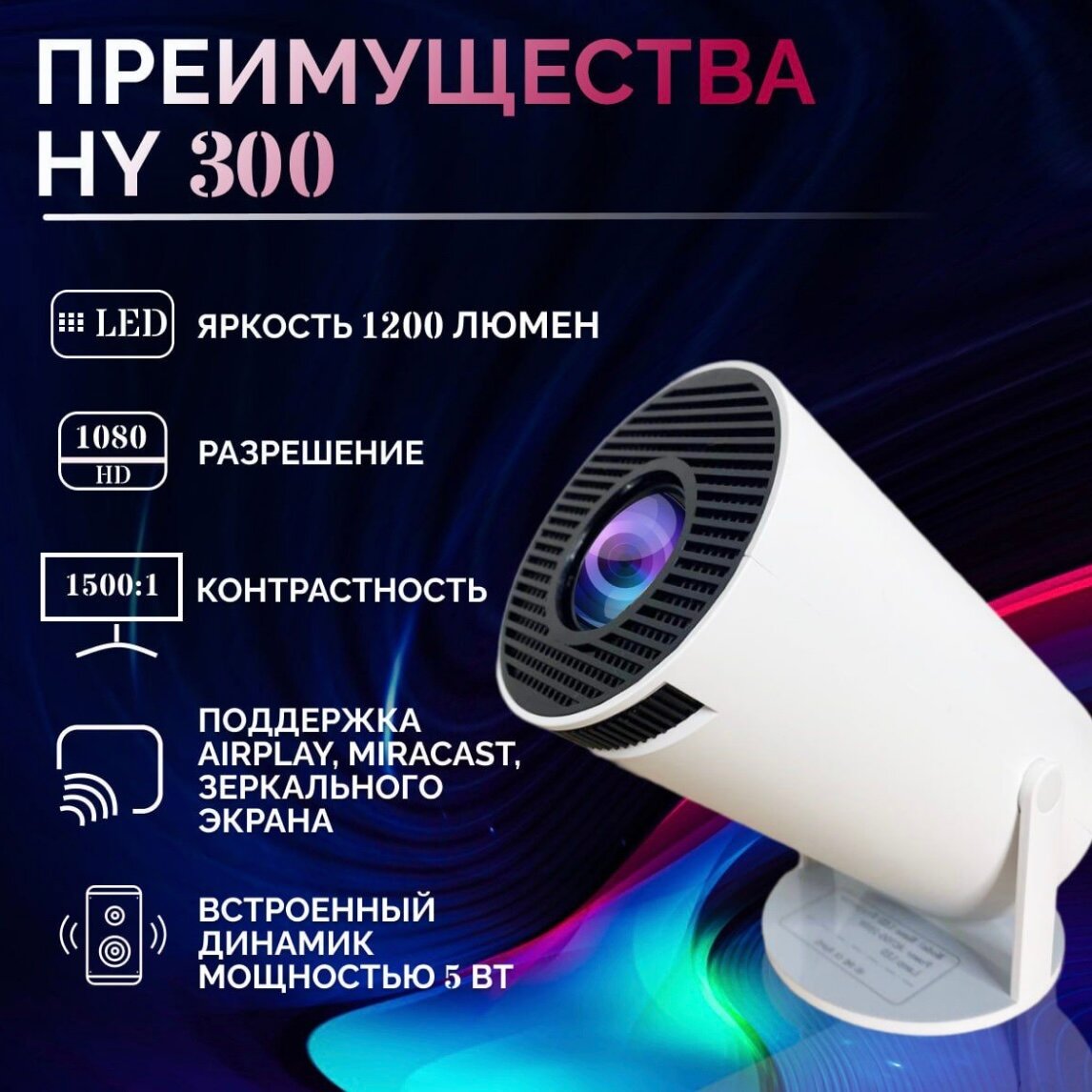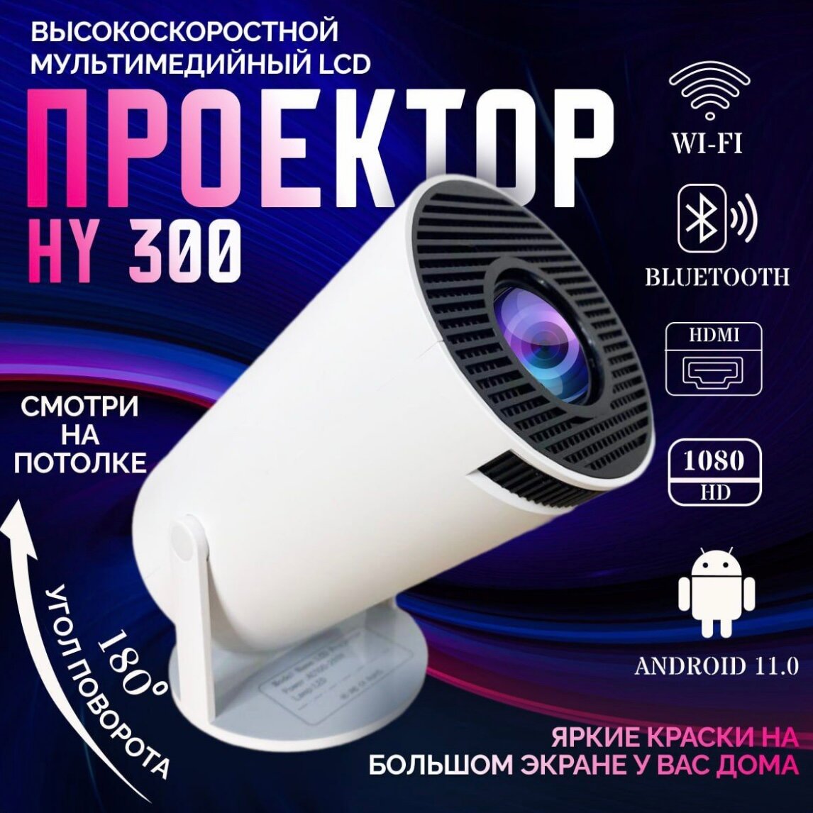 Купить Умный проектор HY-300 на Android 11 для домашнего кинотеатра