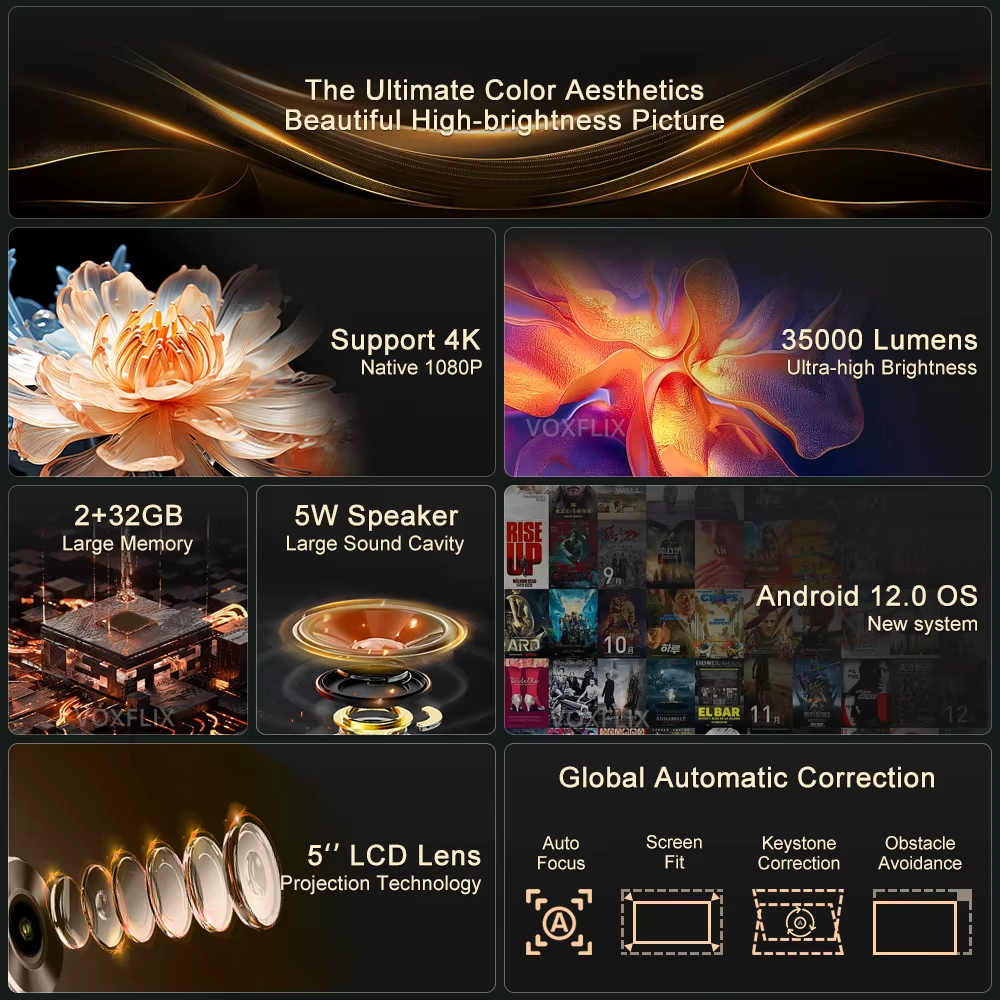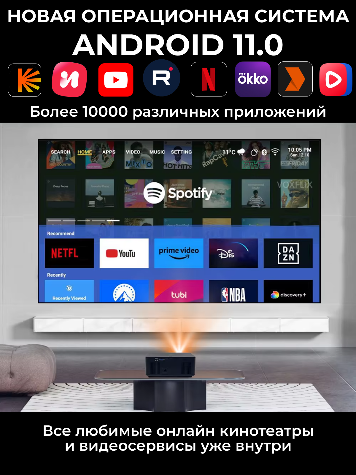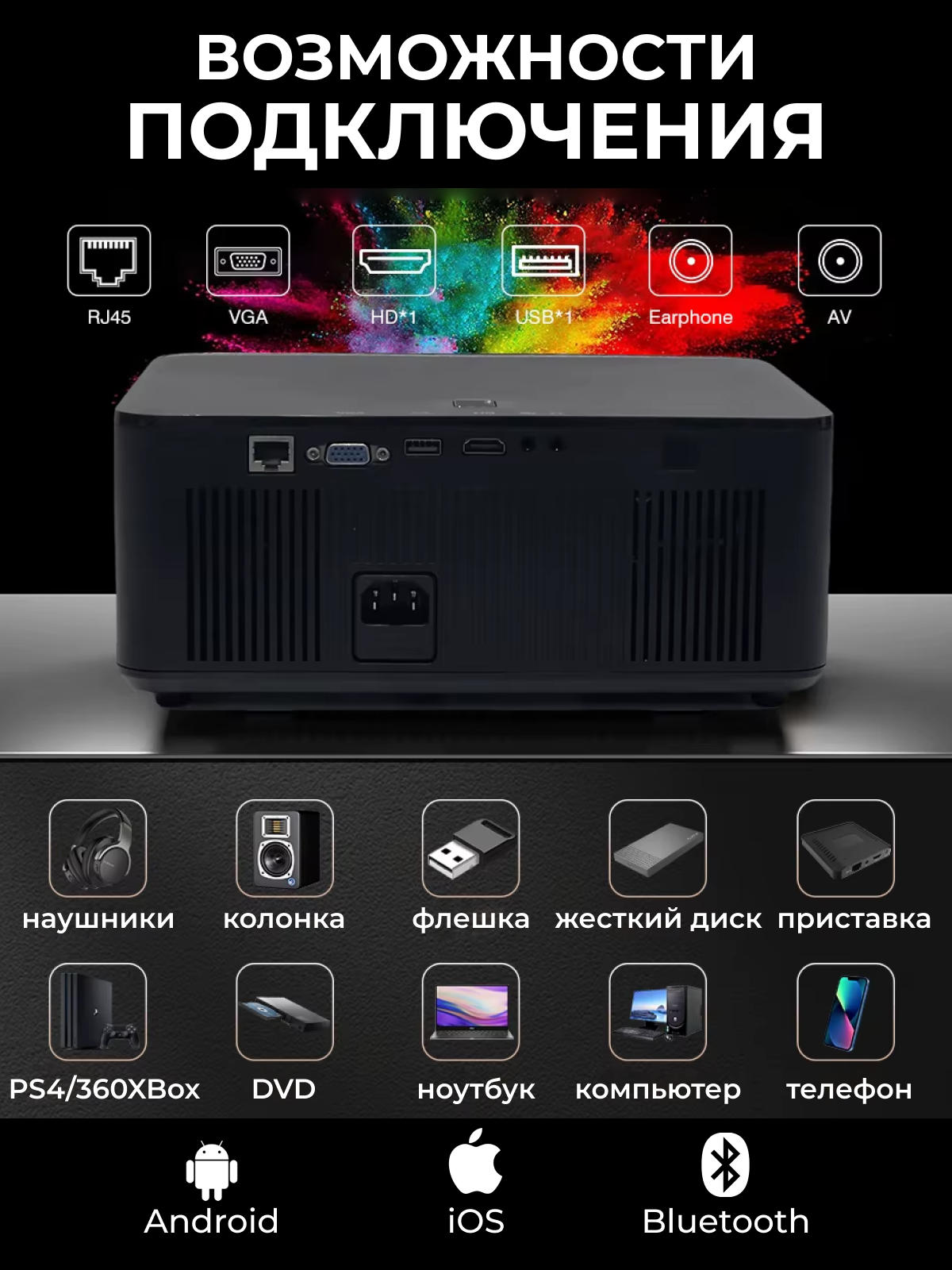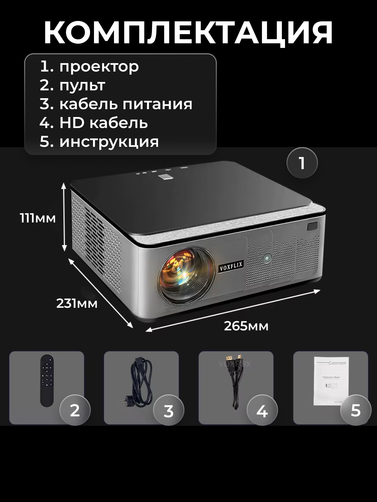 Проектор для фильмов VOXFLIX VF71 яркий домашний проектор для фильмов, мультиков трансляций с Full HD и Android 11 интересное:
