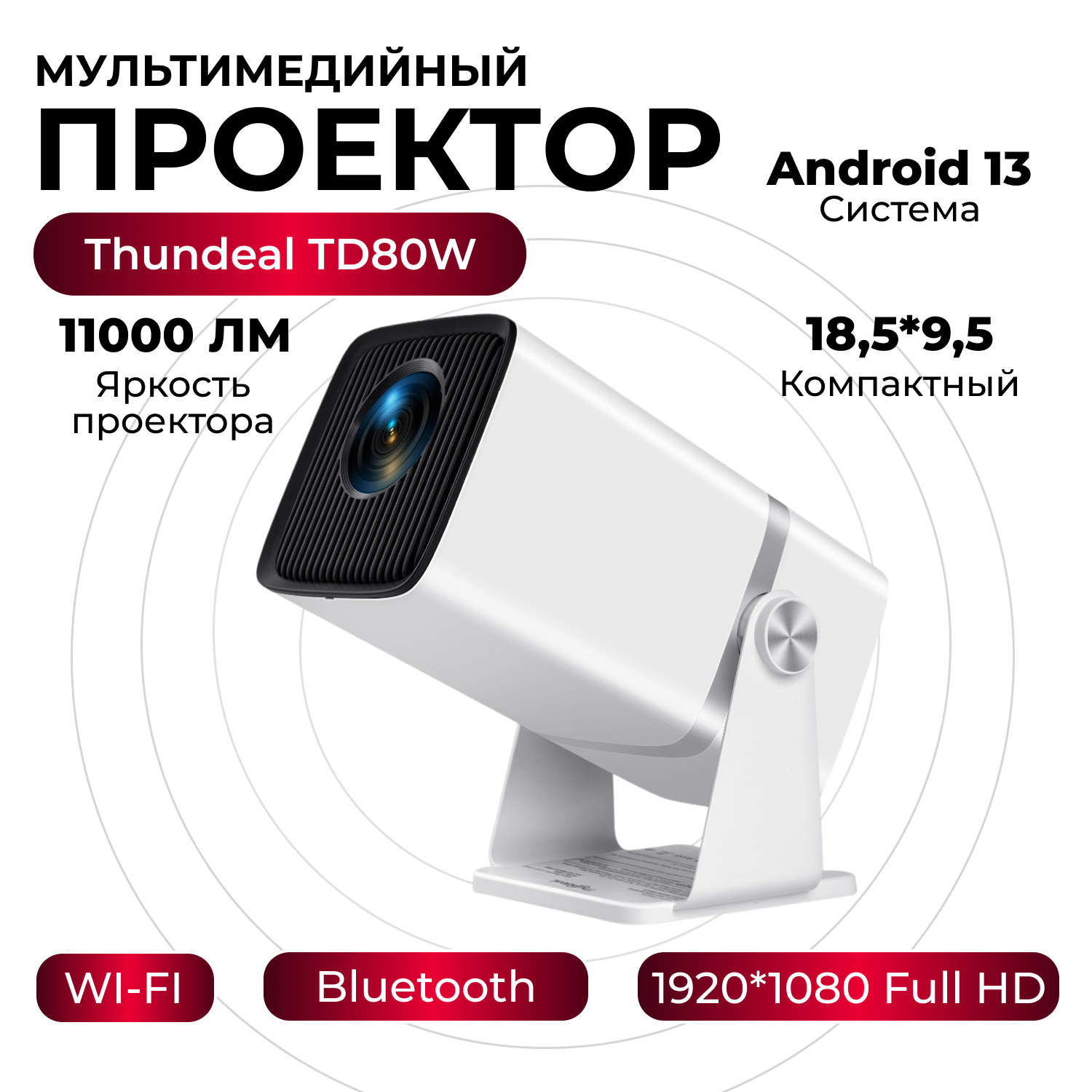 Купить Портативный домашний мини проектор ThundeaL TD80W с Android и WiFi для дома, кино, мультфильмов для детей.