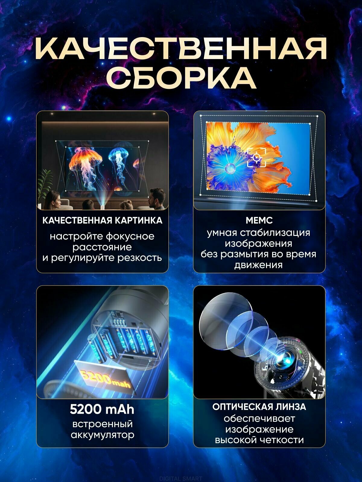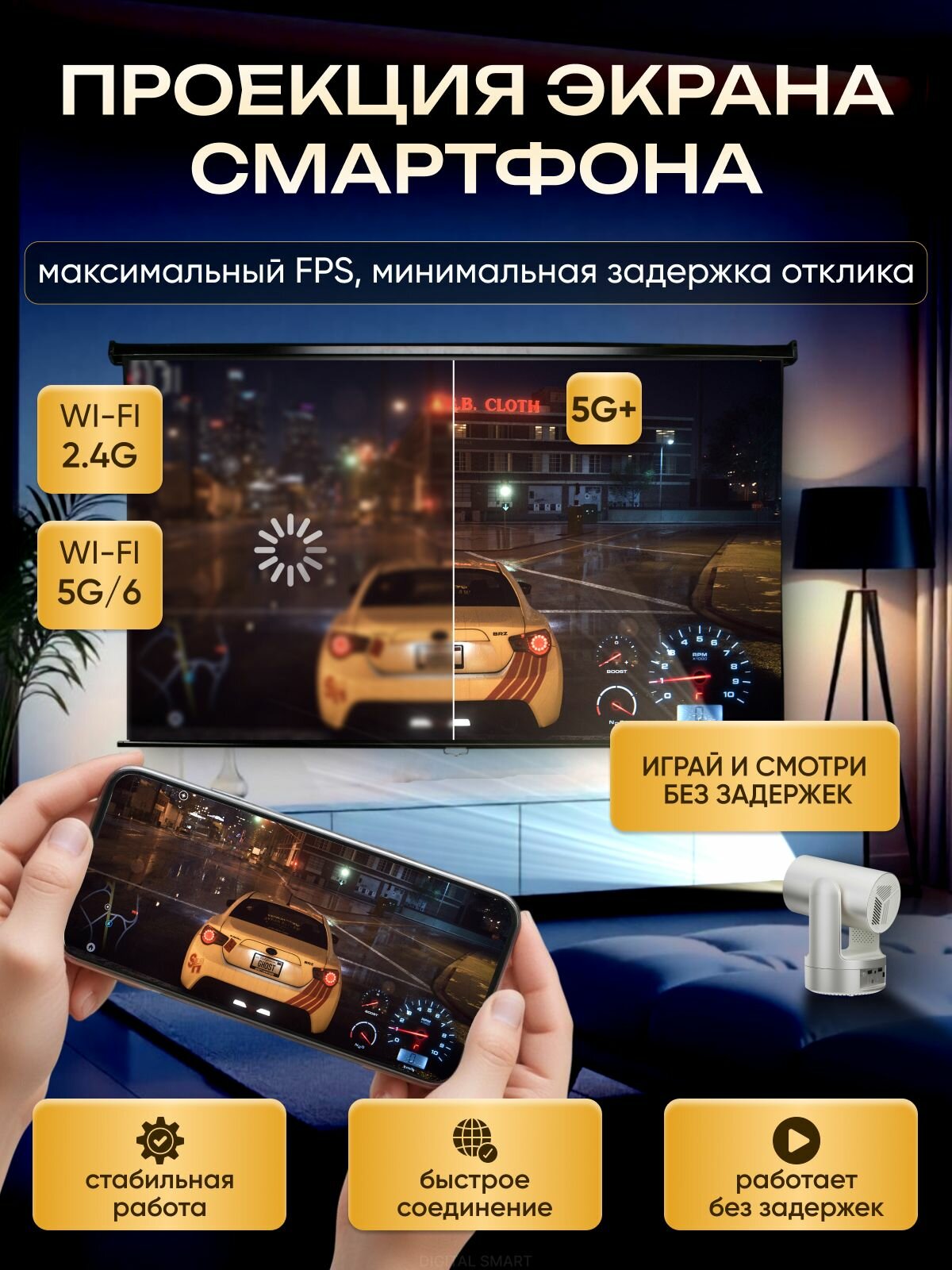 Проектор Умный 5G 2025, FULL HD 4K для фильмов и игр, аккумуляторный, Wi-Fi, Bluetooth интересное: