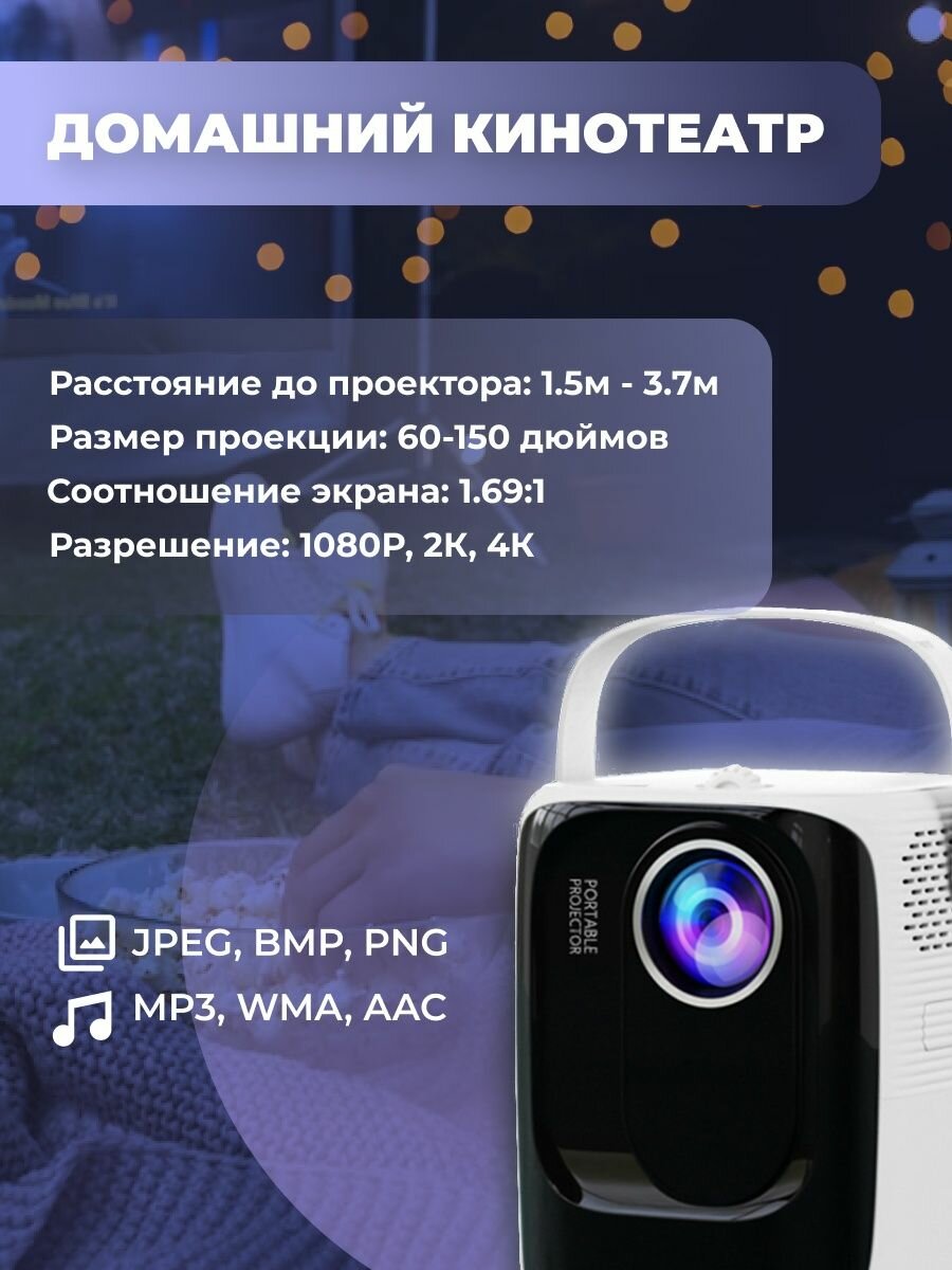 Умный мини проектор Umiio PRO 5G (A007) Портативный проектор для дома с Wi-Fi и Bluetooth + 10 онлайн кинотеатров, белый интересное: