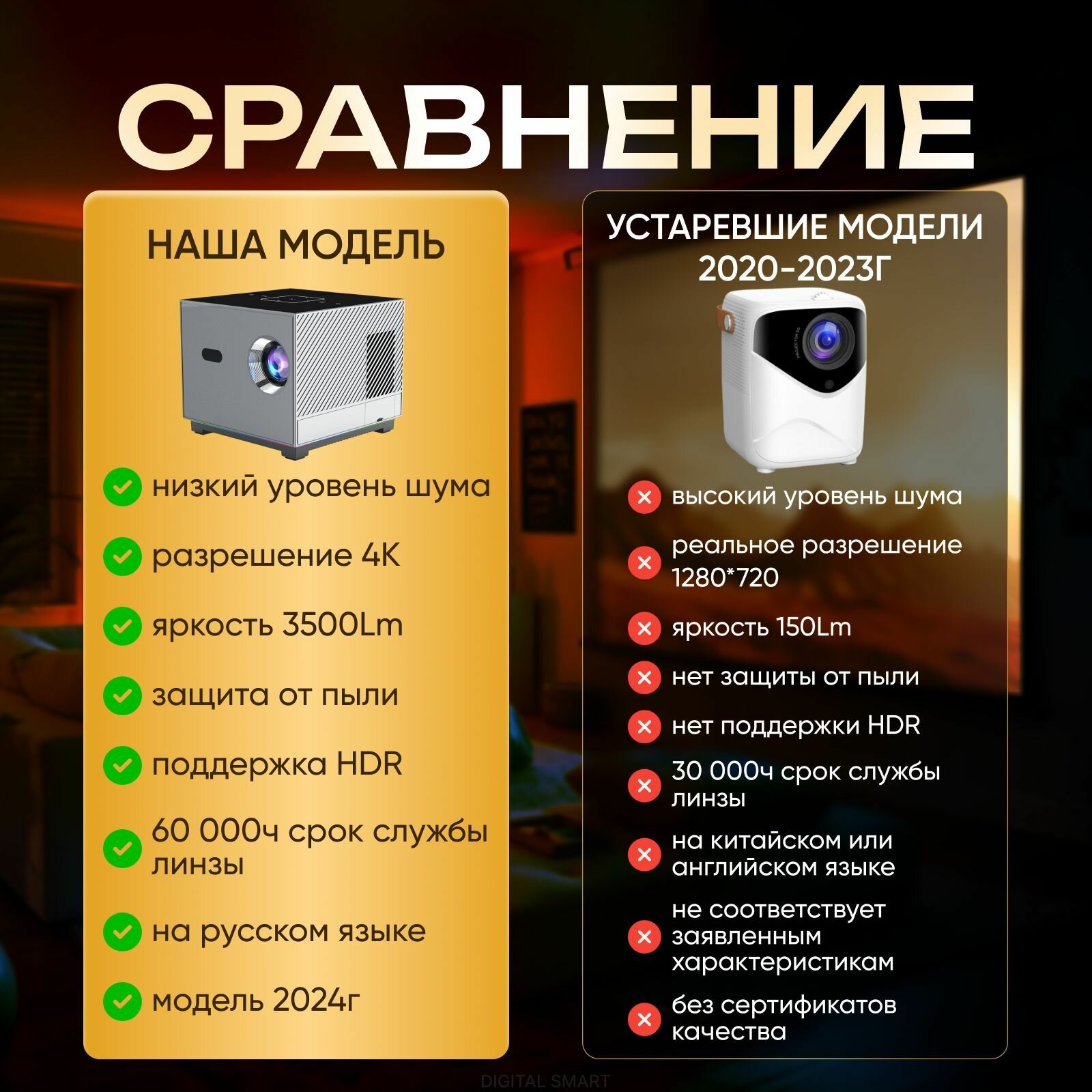Проектор Умный 5G 2024, FULL HD 4K для фильмов и игр, Встроенные динамики, Wi-Fi, Bluetooth интересное: