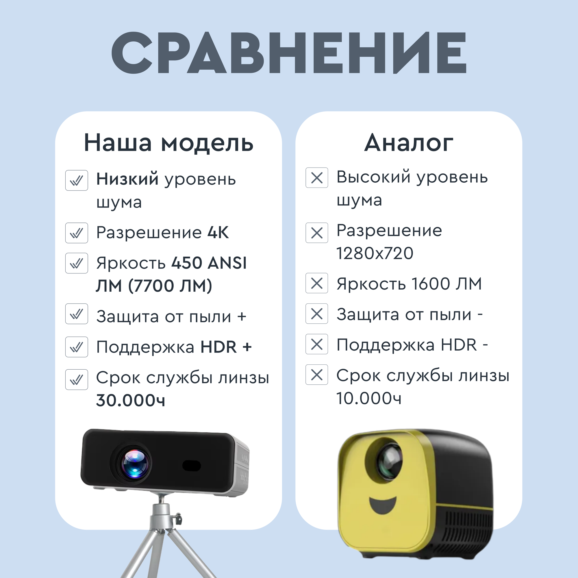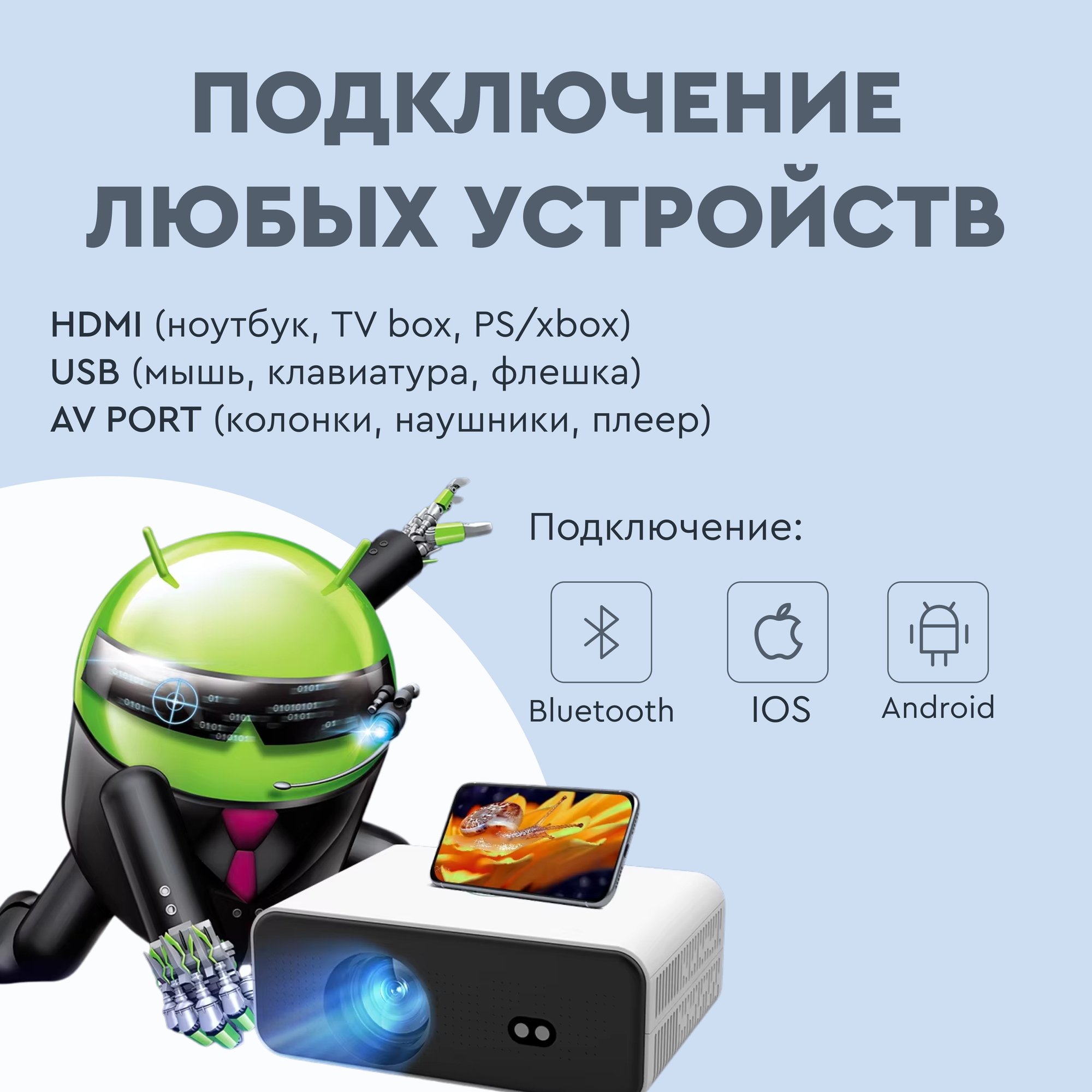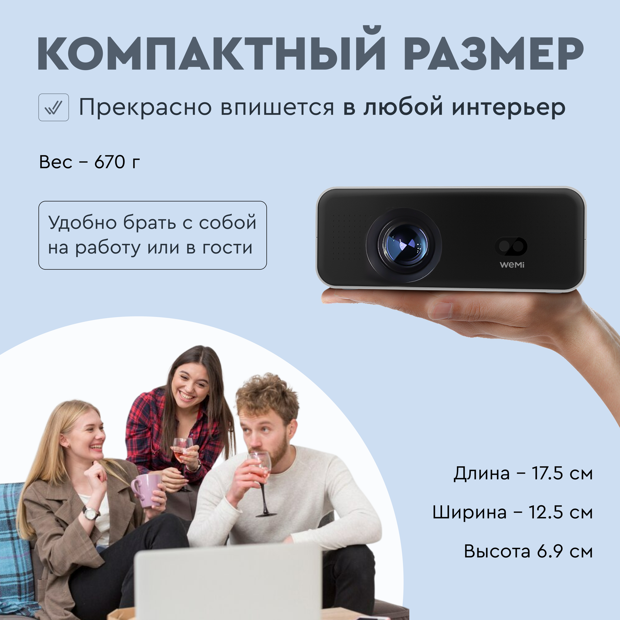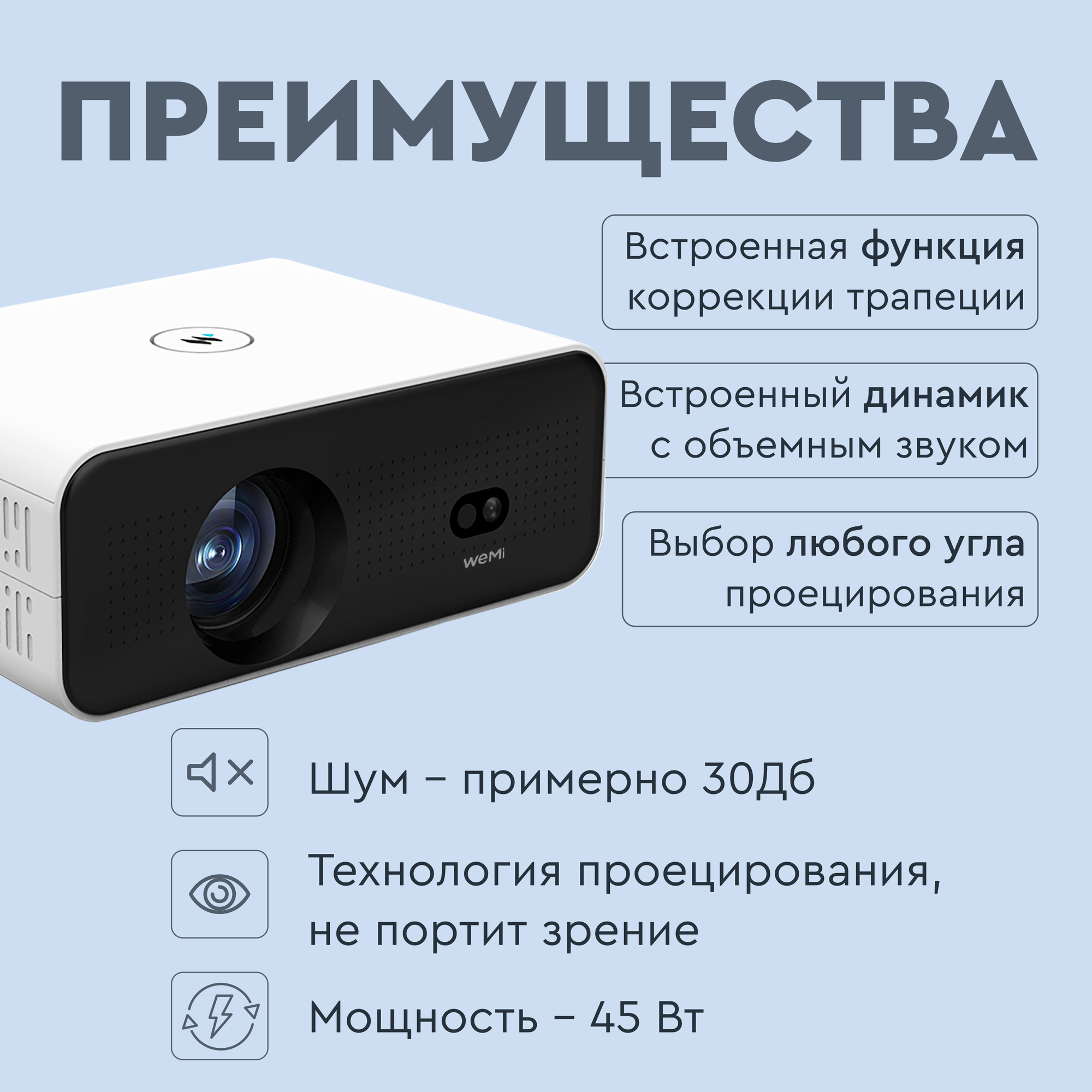 Проектор для домашнего кинотеатра WEMI L 200, поддержка 4К , android 11, автофокус , 2 встроенных динамика. интересное:
