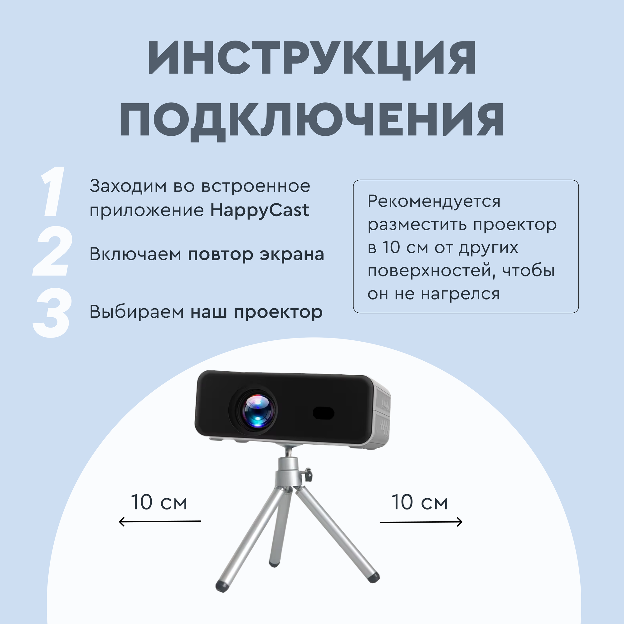 | Комплектация | Проектор 1 шт. Штатив для проектора 1 шт. Кабель питания 1 шт. Кабель HDMI 1 шт. Батарейки ААА 2 шт. Пульт управления 1 шт. Инструкция 1 шт. |