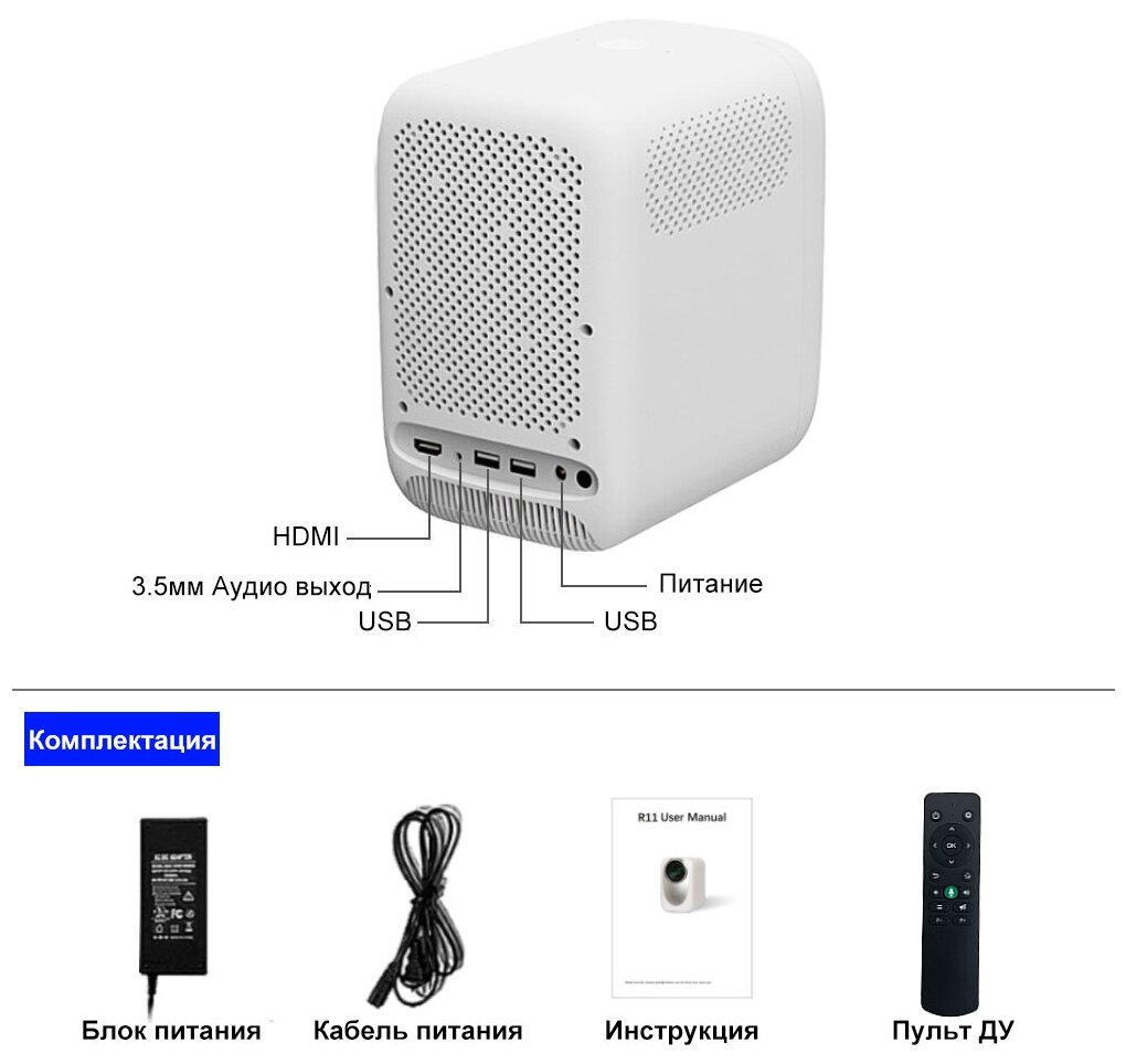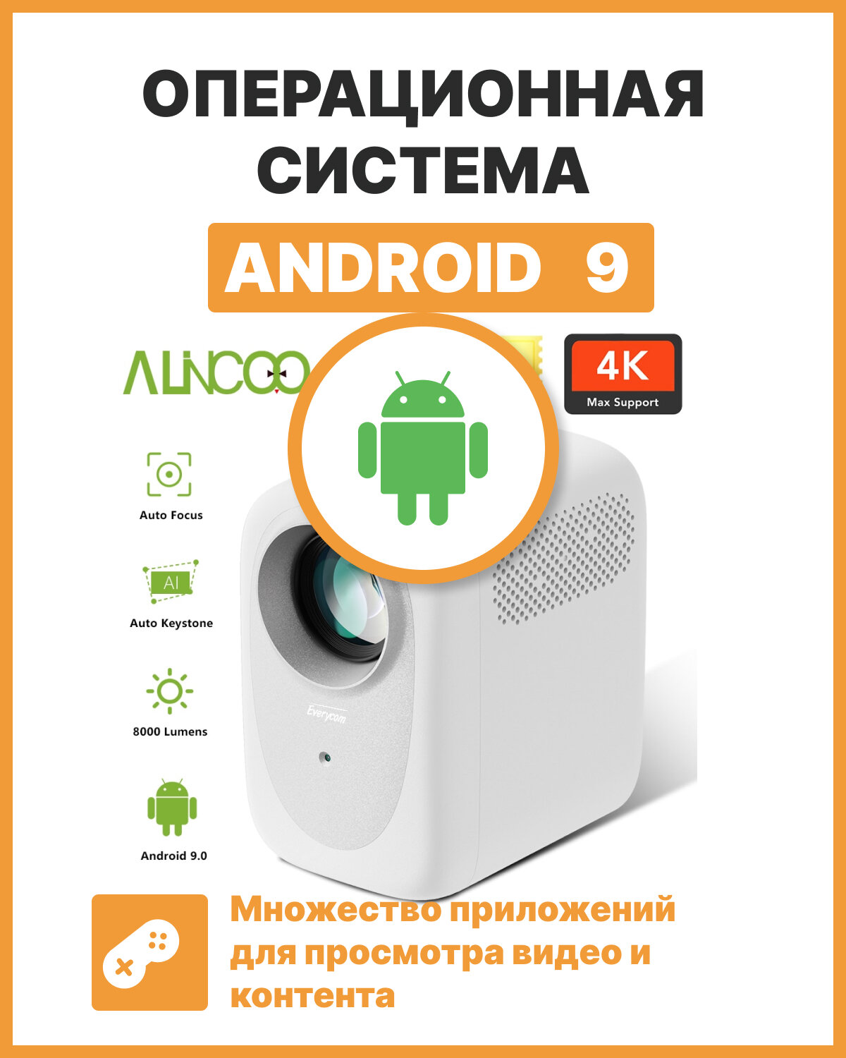Проектор Everycom R11 FullHD Android, 8000л, 1920х1080р, HDR10, беспроводной, белый интересное: