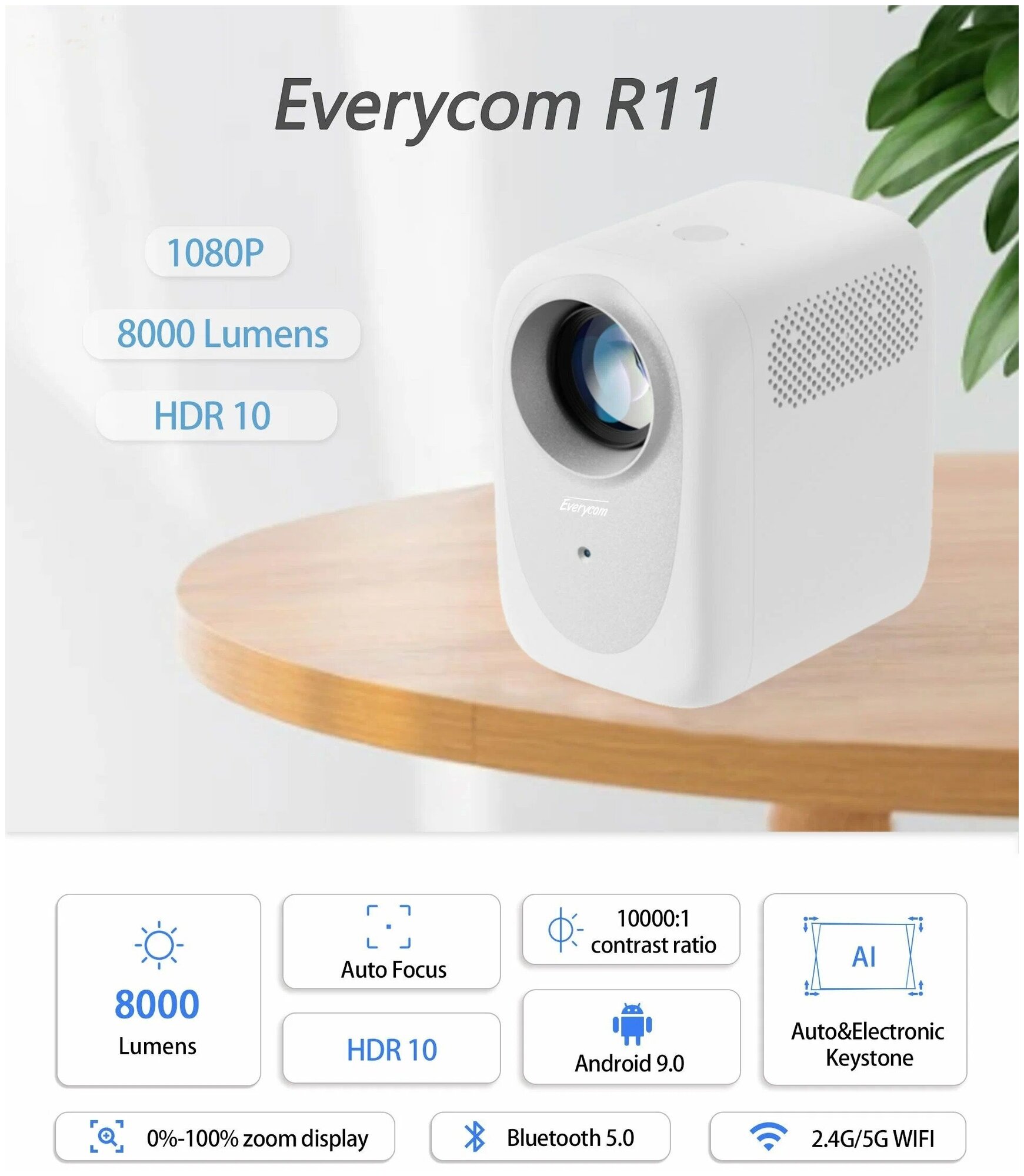 Купить Проектор Everycom R11 FullHD Android, 8000л, 1920х1080р, HDR10, беспроводной, белый