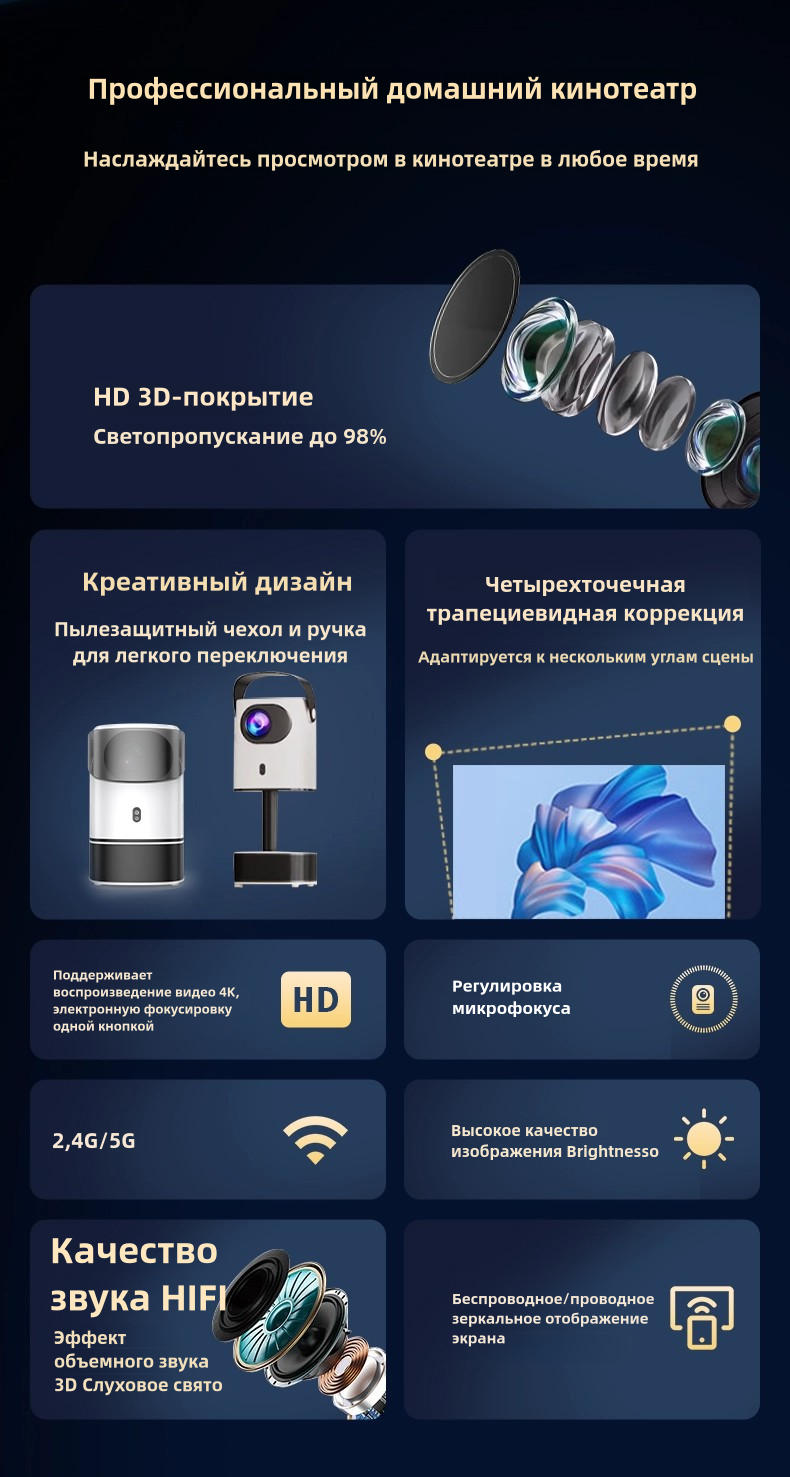 Проектор домашний , портативный, мультимедийный, FEEL WOWTS-2,Full HD 1080P , WIFI, домашний кинотеатр интересное: