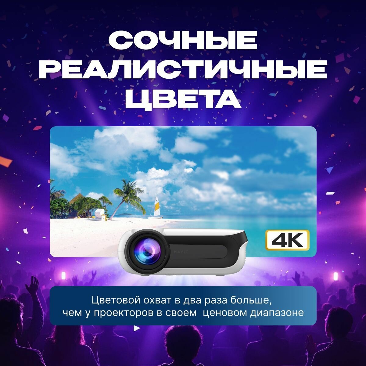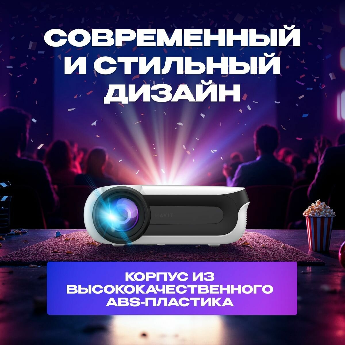 Портативный домашний проектор для просмотра фильмов Havit PJ209 PRO-EU, 1080P, Android интересное: