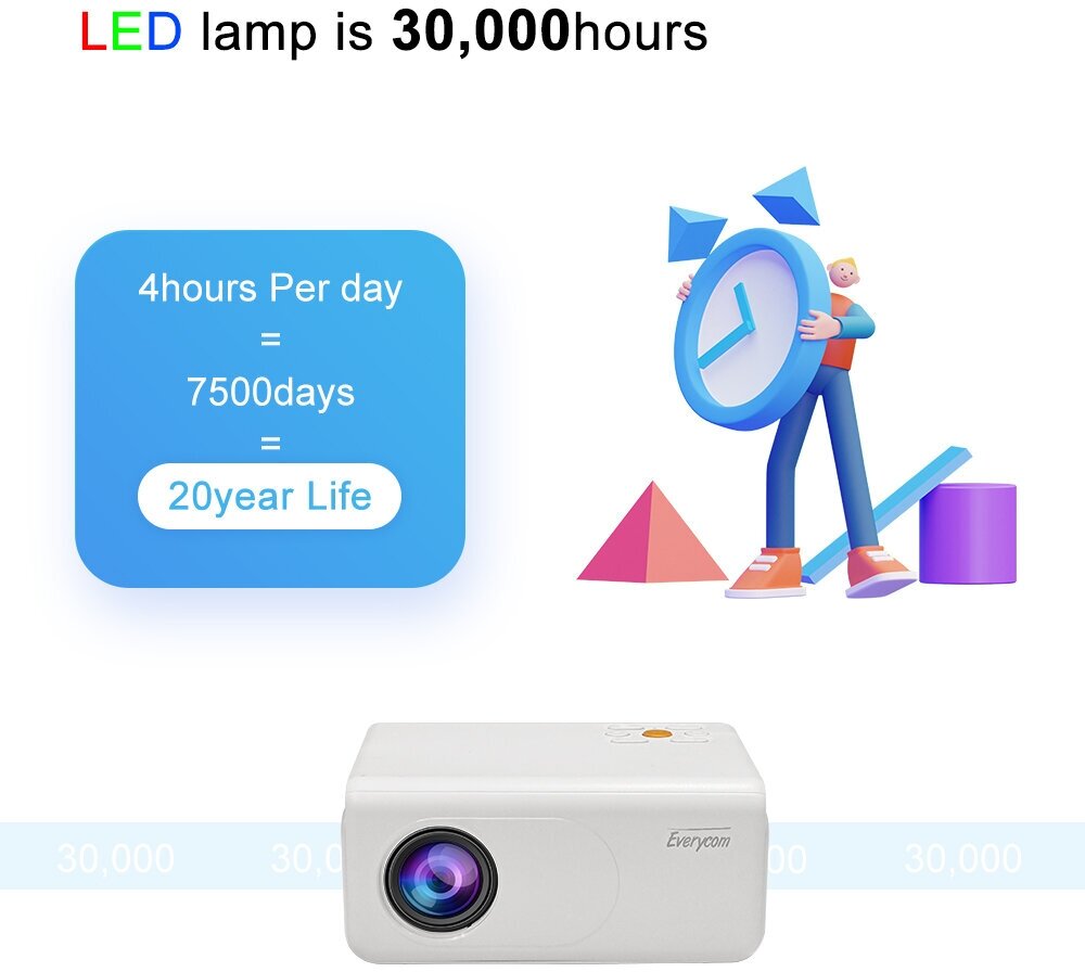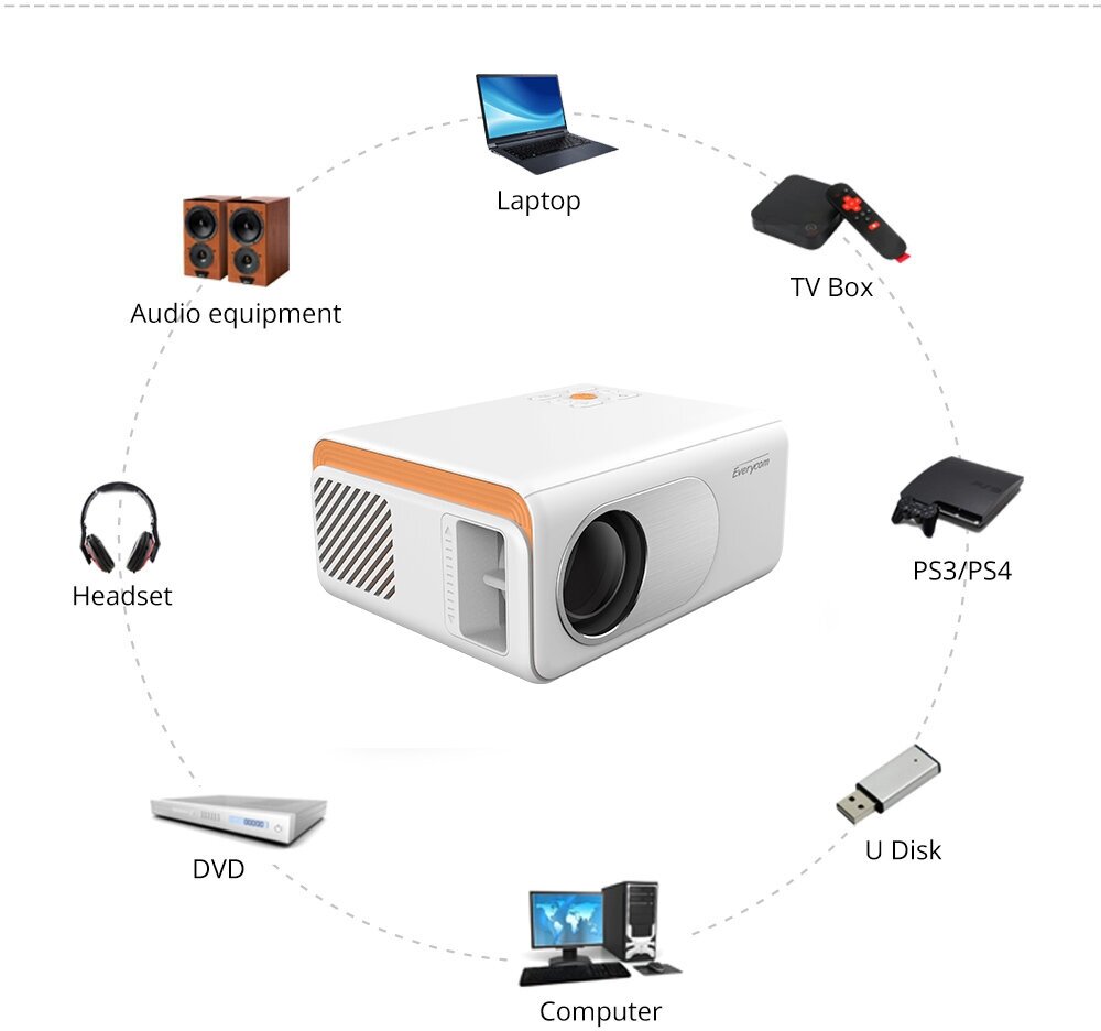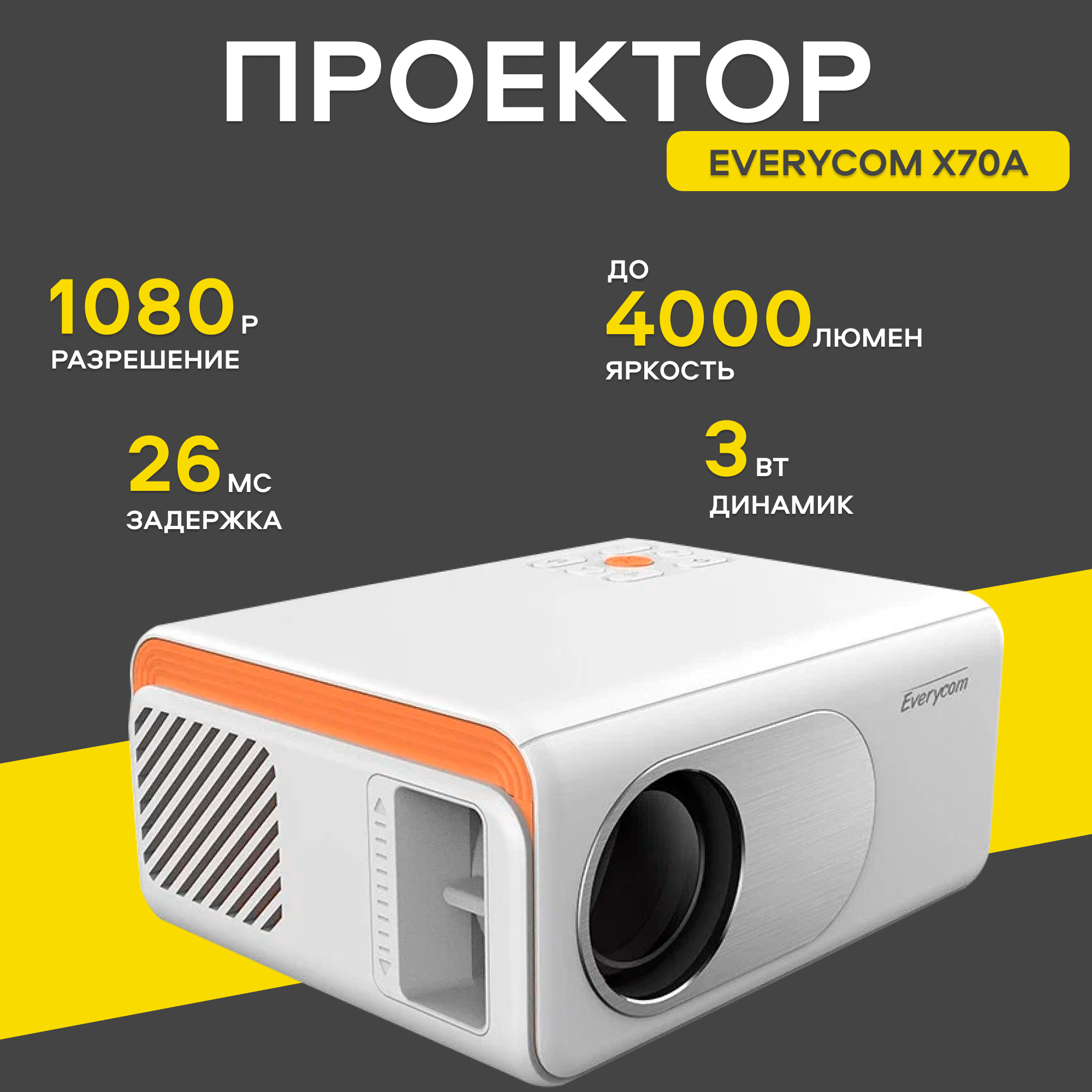 Видеопроектор Everycom X70A, беспроводное зеркальное отображение, белый интересное: