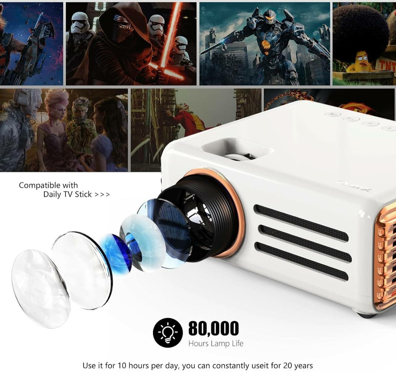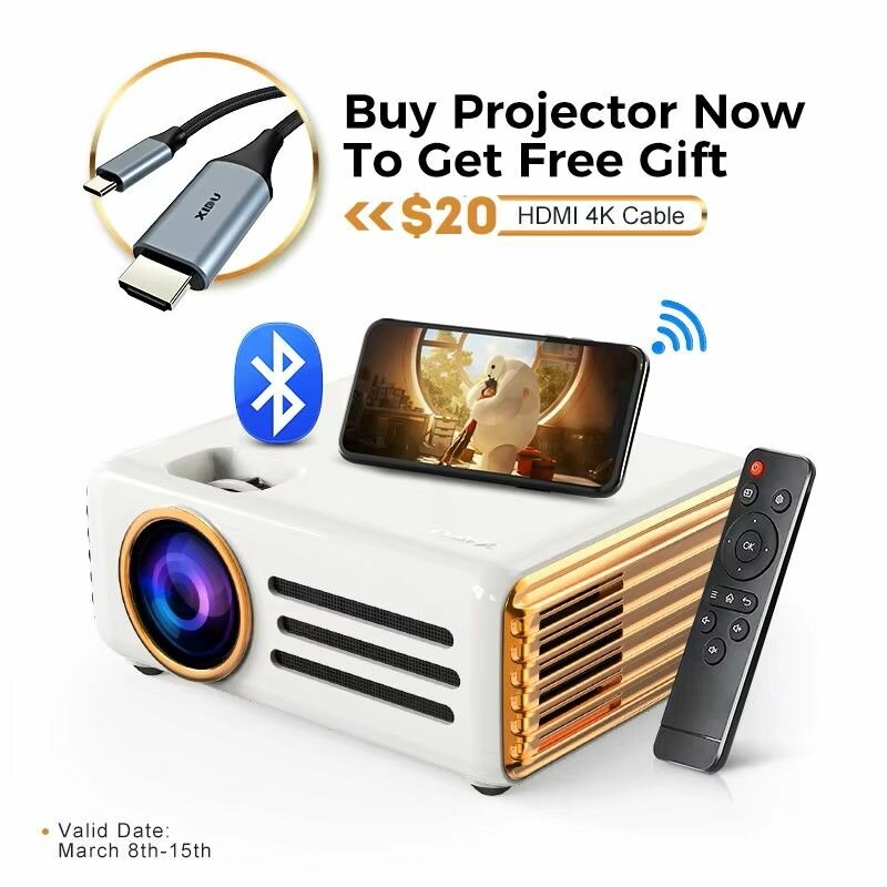 HD-проектор 1080P, WiFi-проектор, Bluetooth-проектор, XIDU XDT3 8000L с 240-дюймовым портативным уличным кинопроектором интересное: