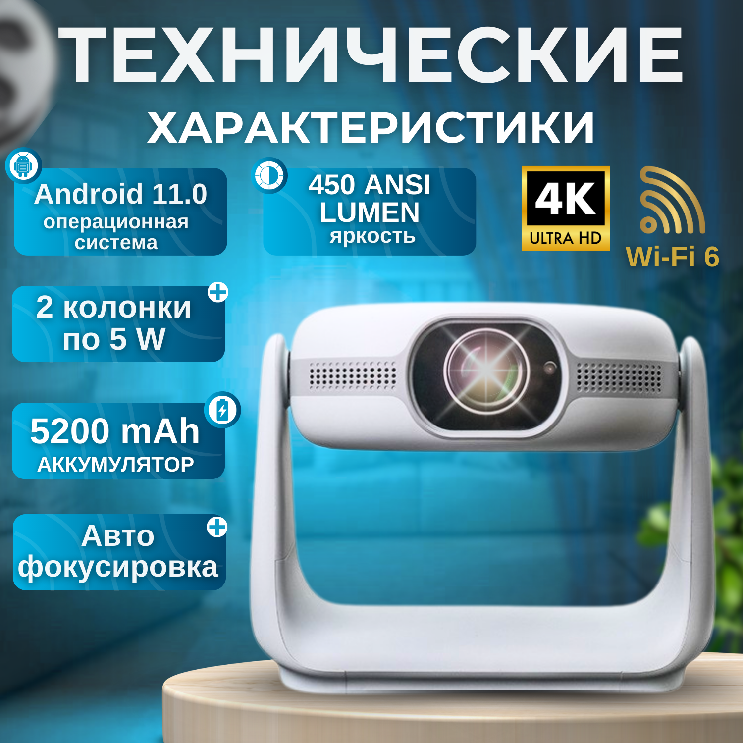 Проектор для фильмов с подсветкой, Full HD, на базе Android, поддержка 4K, проектор домашний wi-fi bluetooth интересное: