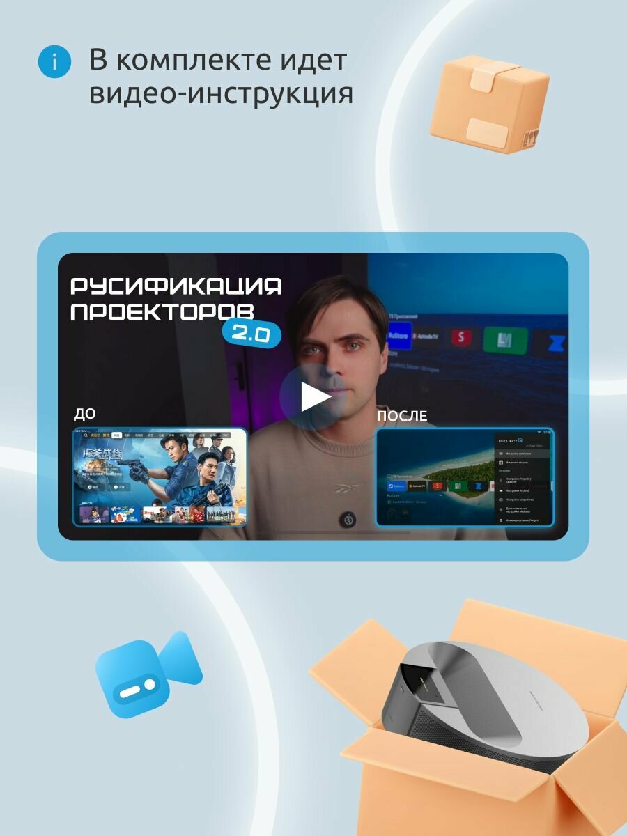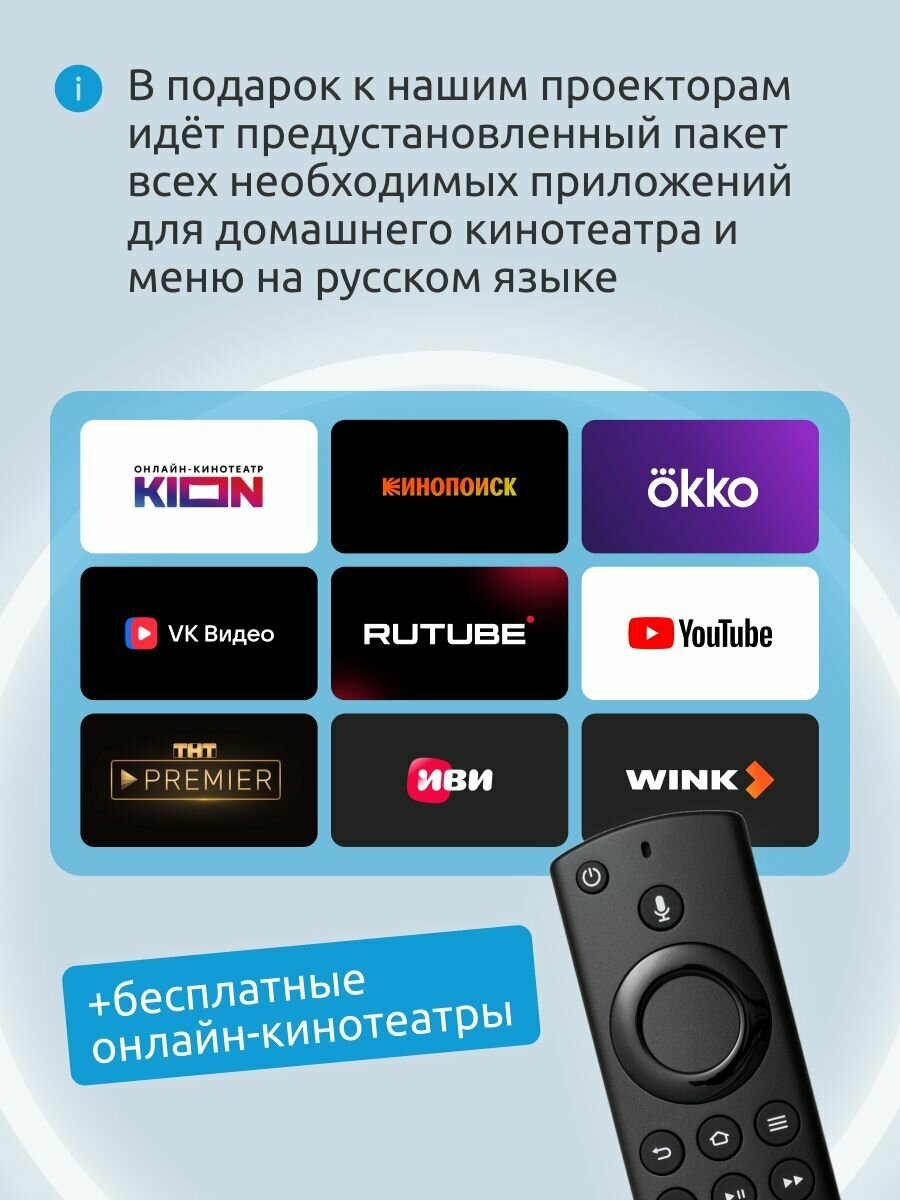 | Комплектация | Проектор, Bluetooth - пульт, кабель и блок питания. |