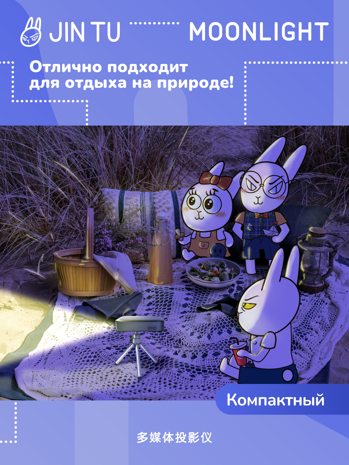 Купить Домашний портативный DLP проектор JIN TU Moonlight HD Android 11. Карманный со встроенным аккумулятором. 105 ANSI.