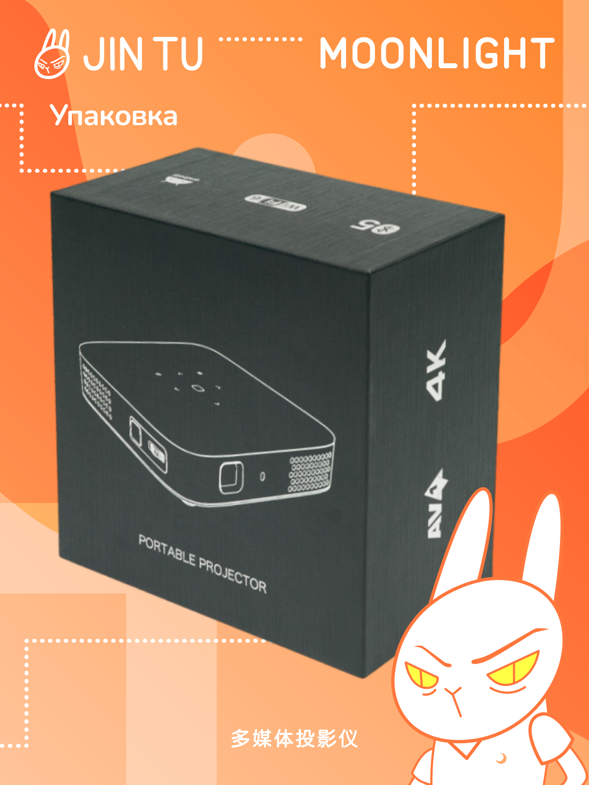 Домашний портативный DLP проектор JIN TU Moonlight HD Android 11. Карманный со встроенным аккумулятором. 105 ANSI. интересное:
