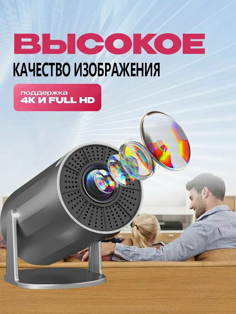 Купить 2025 Новый 4K проектор для кино и игр, Android 11.5G, встроенный динамик, автофокус, автоматическая коррекция трапецеидальных искажений/черный и серый Xobajin