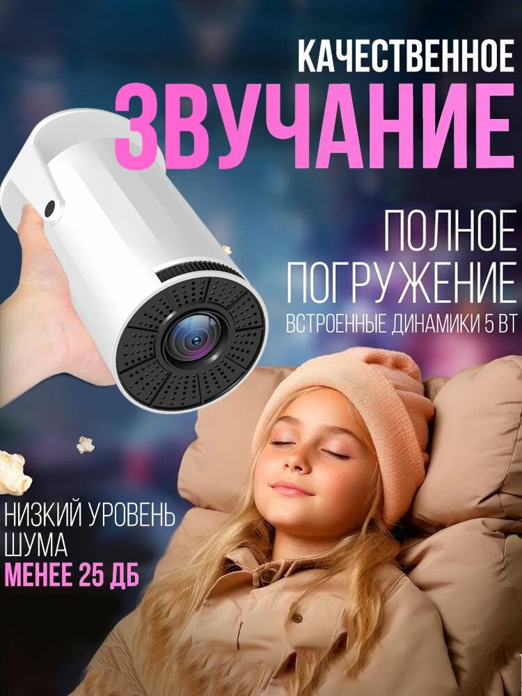 Купить 2025 Новый 4K проектор для кино и игр, Android 11,5G, Встроенные динамики, Автофокус, Автоматическая коррекция трапецеидальных искажений/белый Xobajin